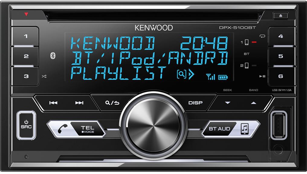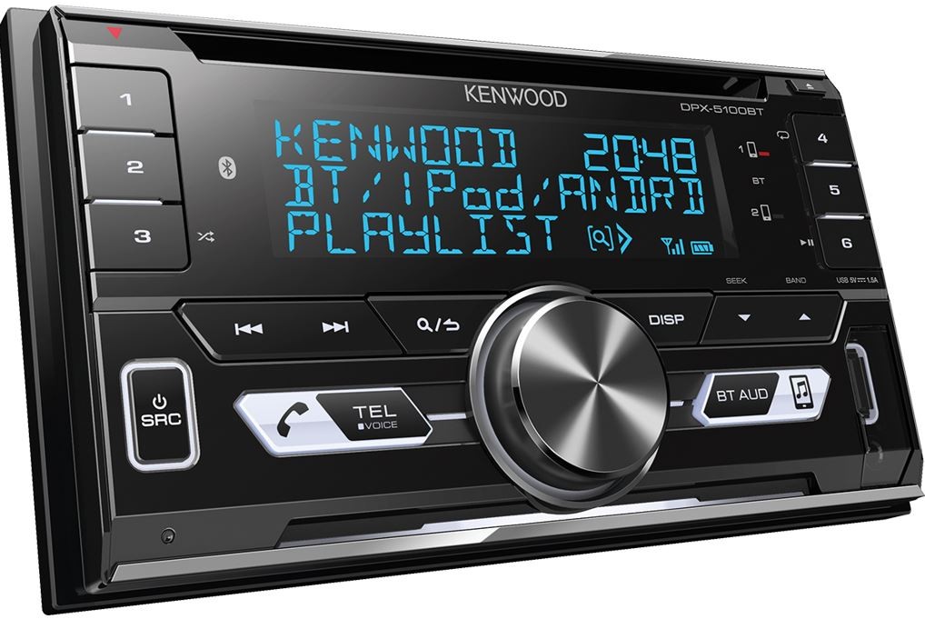 Дизайнът, качеството и изпълнението на това 2DIN автомобилно радио Kenwood са отлични и в този ценови сегмент няма много конкуренция. Предлага CD механика, USB вход, вграден Bluetooth модул, многоцветна подсветка и възможност за управление на Apple устройства. Такова автомобилно радио може да получите на цена под 4 000,- Kč.Общи спецификации на автомобилното радио Kenwood DPX-5100BT