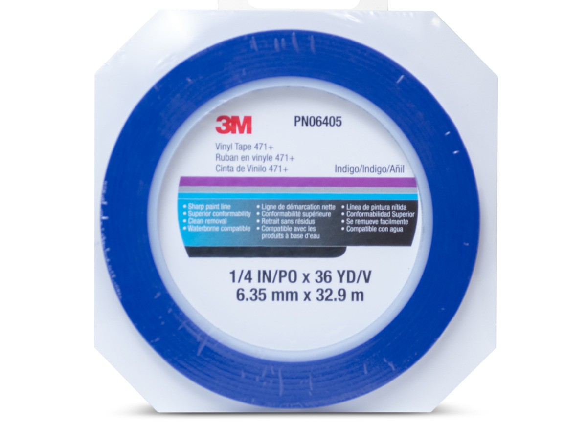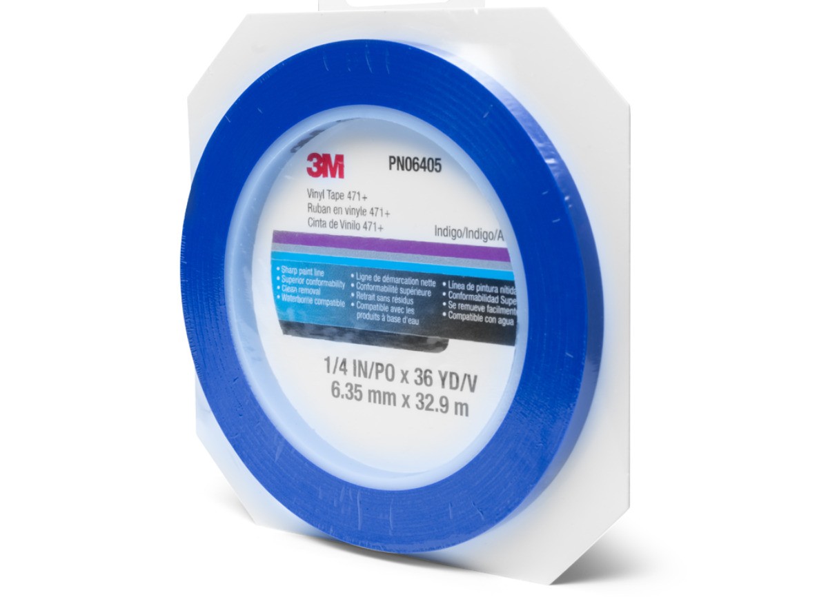 3M виниловата лента 471+ осигурява производителност и продуктивност, създава фини маскиращи линии при много критични приложения при боядисване и покрития. Остри и чисти линии на боята за разделяне на цветовете са възможни, тъй като лентата устоява на поддигане и нейният универсален каучуков адхезив прилепва към широк спектър от повърхности, включително смоли. Тя може да се отстрани чисто от плоски или по-сложни повърхности. 3M виниловата лента 471+ с универсален каучуков адхезив и леко прозрачна носеща подложка позволява прецизно маскиране и подравняване при прости или сложни модели. Тази лента осигурява чисто отстраняване без остатъци от лепило, дори след 30-минутен пеков цикъл при 250 ºF (121 ºC). Лентата е проектирана да се адаптира добре към криви, да се разтяга и да остане залепена, дори при радиус около 1,5″. Копира неправилни модели и създава остри линии. Нейната лека полупрозрачност позволява допълнително подравняване и корекции при модели със сложни извивки. Тази гъвкава винилова носеща подложка е също устойчива на износване и ще защитава прилежащите повърхности при повечето операции на пясъкоструене. След завършване може да се отстрани на един пласт, запазвайки острите линии на боята, които е помогнала да се създадат.