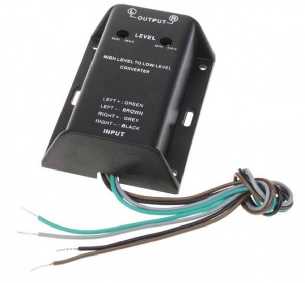 - При свързване към говорителните изходи на авторадиотo намалява нивото на сигнала до LOW