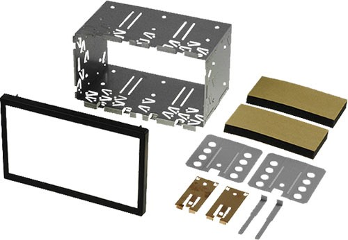 -Комплектът съдържа: Монтажни ключове (2 бр.), Пластмасова дистанционна рамка, bСтранични планки за монтаж към авторадиото, Метална рамка.