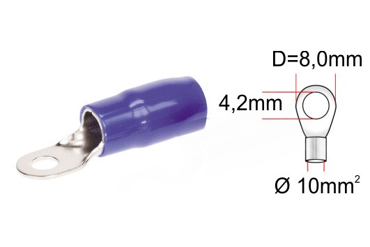 сребристо кабелно око за кабел 10 mm² синя изолация, 4,2 mm