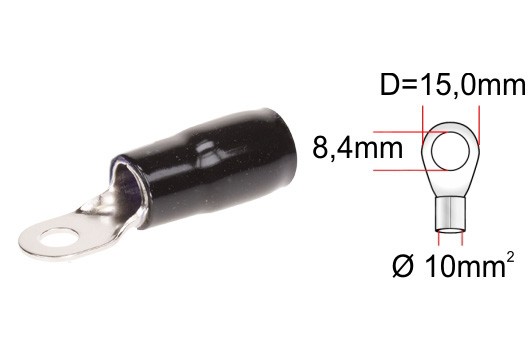 кабелна обувка сребристa за кабел 10 mm², черна изолация, 8,4 mm отвор