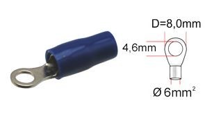 кабелно око сребристо за кабел 6,0 mm², синя изолация, отвор 4,6 mm