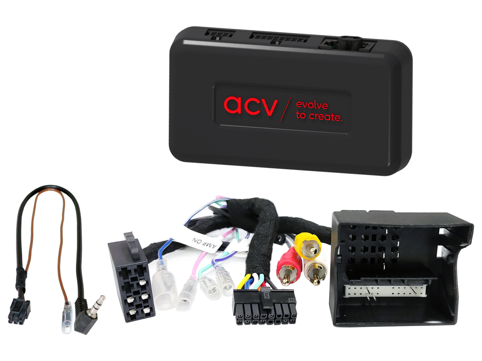 - Съвместим с афтърмаркет радиа, които поддържат OEM MOST система, OEM задна камера и имат аналогов вход за управление от волана.