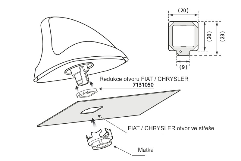- Предназначено за автомобили с антена, разположена в задната част на покрива с отвор 20 x 20 mm.