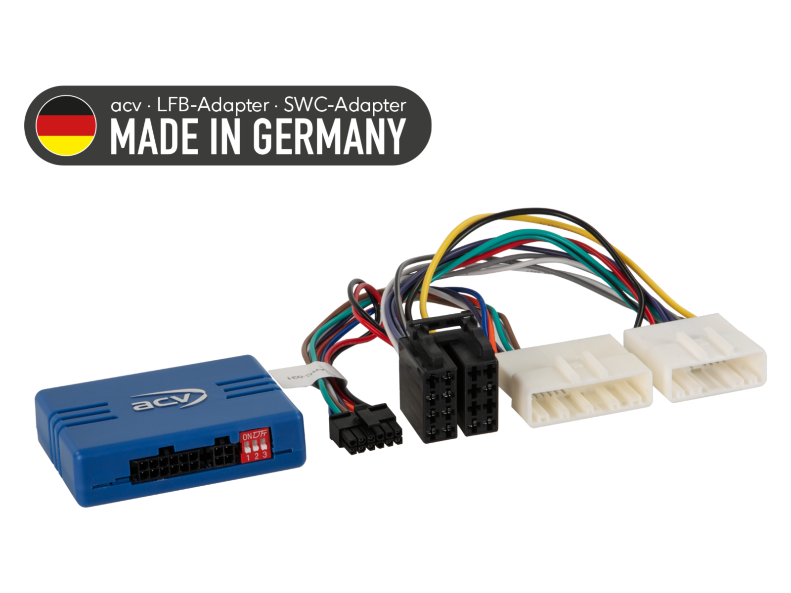 Запазете оригиналните функции за управление на автомобилното радио от волана при подмяна на фабричното радио с aфтърмаркет устройство. В зависимост от оборудването на автомобила, набора от функции и софтуера на новоинсталираното радио може да се стигне до ограничаване или замяна на някои функции с други. Сравнете показаните конектори на кабелния сноп с конекторите във вашия автомобил и се уверете, че съответстват както технически, така и визуално. Проверете дали първоначално е било инсталирано някое от посочените OEM автомобилни радиа. Преди финалната инсталация проверете функционалността на автомобила, настройките на системата и правилното функциониране на управлението от волана (SWC).