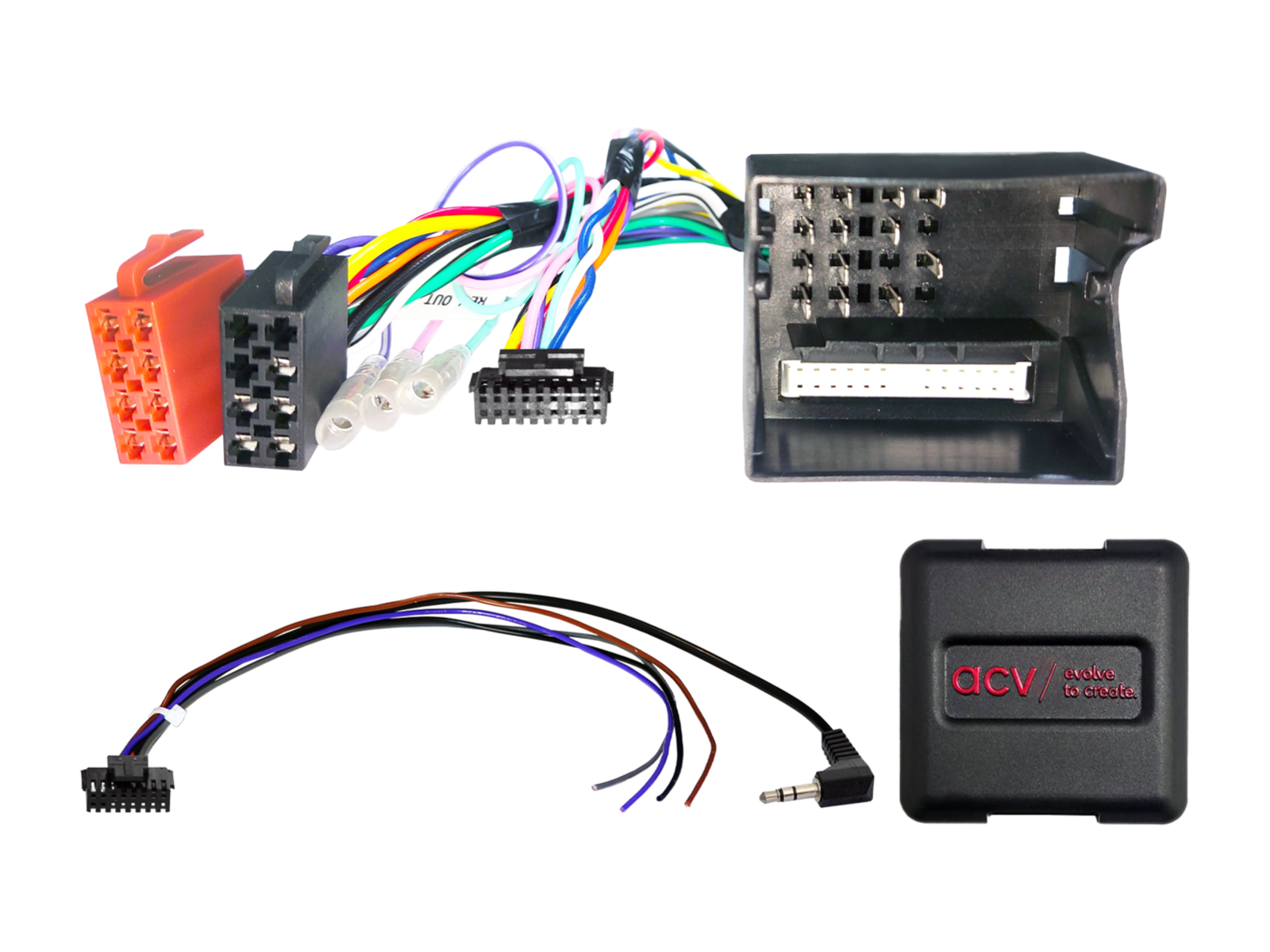 - Свързване на OEM управлението от волана: 3,5 мм жак или свободен проводник към SWC входа на радиото.