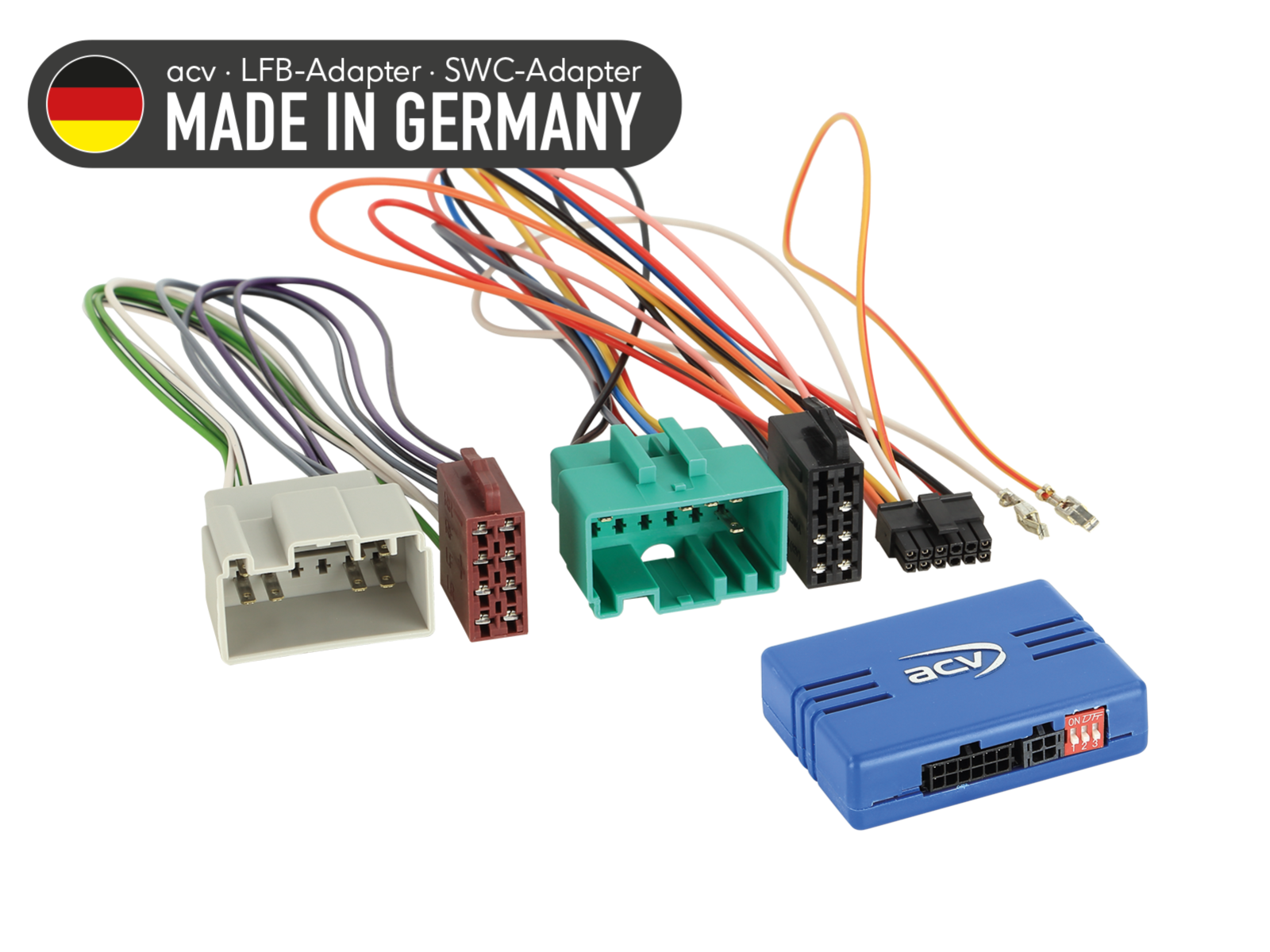 Запазете оригиналните функции за управление на автомобилното радио от волана при смяна на оригиналното радио с aфтърмаркет единица. В зависимост от оборудването на автомобила, обхвата на функциите и софтуера на новоинсталираното радио може да има ограничения или някои функции да бъдат заменени с други. Сравнете показаните конектори на кабелния сноп с конекторите във вашия автомобил и се уверете, че съответстват както технически, така и визуално. Проверете дали първоначално е било инсталирано някое от посочените OEM радиа. Преди окончателен монтаж проверете функционалността на автомобила, настройките на системата и правилното функциониране на управлението от волана (SWC).