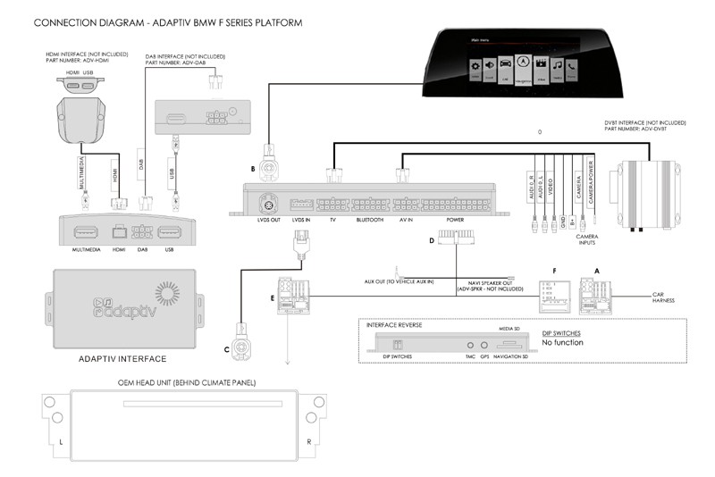 Adaptiv - електронен модул, който позволява разширяване на съществуващите единици с OEM монитор с навигация, възпроизвеждане на видео, USB вход, iPhone, SD карта, HDMI, AUX, свързване на задна паркинг камера, DAB радиотунер или DVB-T телевизия. Всичко се управлява чрез роторния контролер BMW idrive.