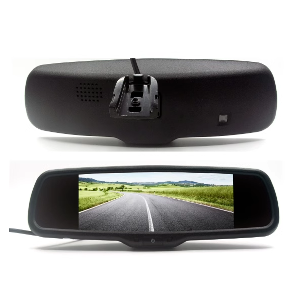 Универсален монитор с 7\" IPS дисплей, интегриран в задното огледало, за показване на сигнали от 2 камери