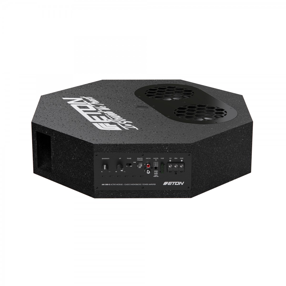 RES FLAT е новият активен събуфър от Eton. Само 126 mm височина правят този събуфър решение за вашия проблем! Шофьори с малко място за резерва, внимание: разполага с басове с впечатляваща дълбочина! Масивното оформление на кутията е от MDF плоскост, със специално защитно покритие и има здрава метална решетка. Новоразработеният активен модул AM300-2 разполага с 300 W RMS и заедно с два специално разработени 13 cm (5") субуфъра (Made in Germany) в bassreflex кутия наистина може да впечатли. В комплекта ще намерите и дистанционно управление и монтажни аксесоари.