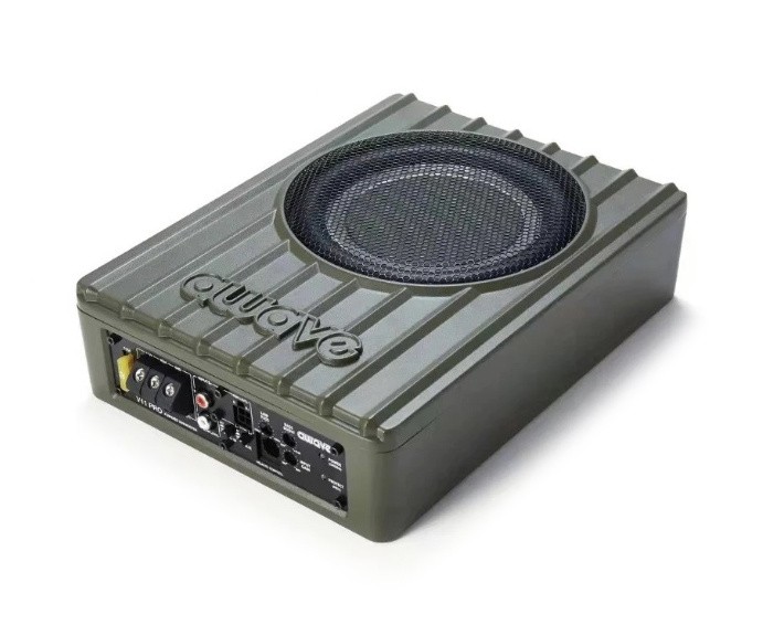 Ако монтажното пространство в автомобила е ограничено и настоящата Hi-Fi система се нуждае от "буст" в нискочестотния обхват без голямо усилие, новите активни субуфъри Awave V11 Pro са правилният избор. Здрав говорител с твърда алуминиева мембрана с диаметър 6,5" и термоустойчива гласова бобина лесно преобразува мощността на вградения цифров усилвател в впечатляващи басове. Основните предимства на субуфера са много компактните размери, благодарение на които той се побира практически навсякъде. Субуферът впечатлява и с интересен дизайн в модерно зелено, качествена изработка и здраво алуминиево шаси. Още при повдигане ще стане ясно, че това е сериозен, тежък уред. Интензитетът на ниските честоти може да се регулира директно на шасито или чрез дистанционното управление, което е включено в комплекта. Могат да се настроят и Bass Boost, Low Pass филтър и Phase Shift. Налични са както входове с високо ниво, така и входове с ниско ниво (RCA). Идеалното решение за всички, които искат да подсилят басовата част на озвучаването и да не загубят практически никакво място в интериора на автомобила.