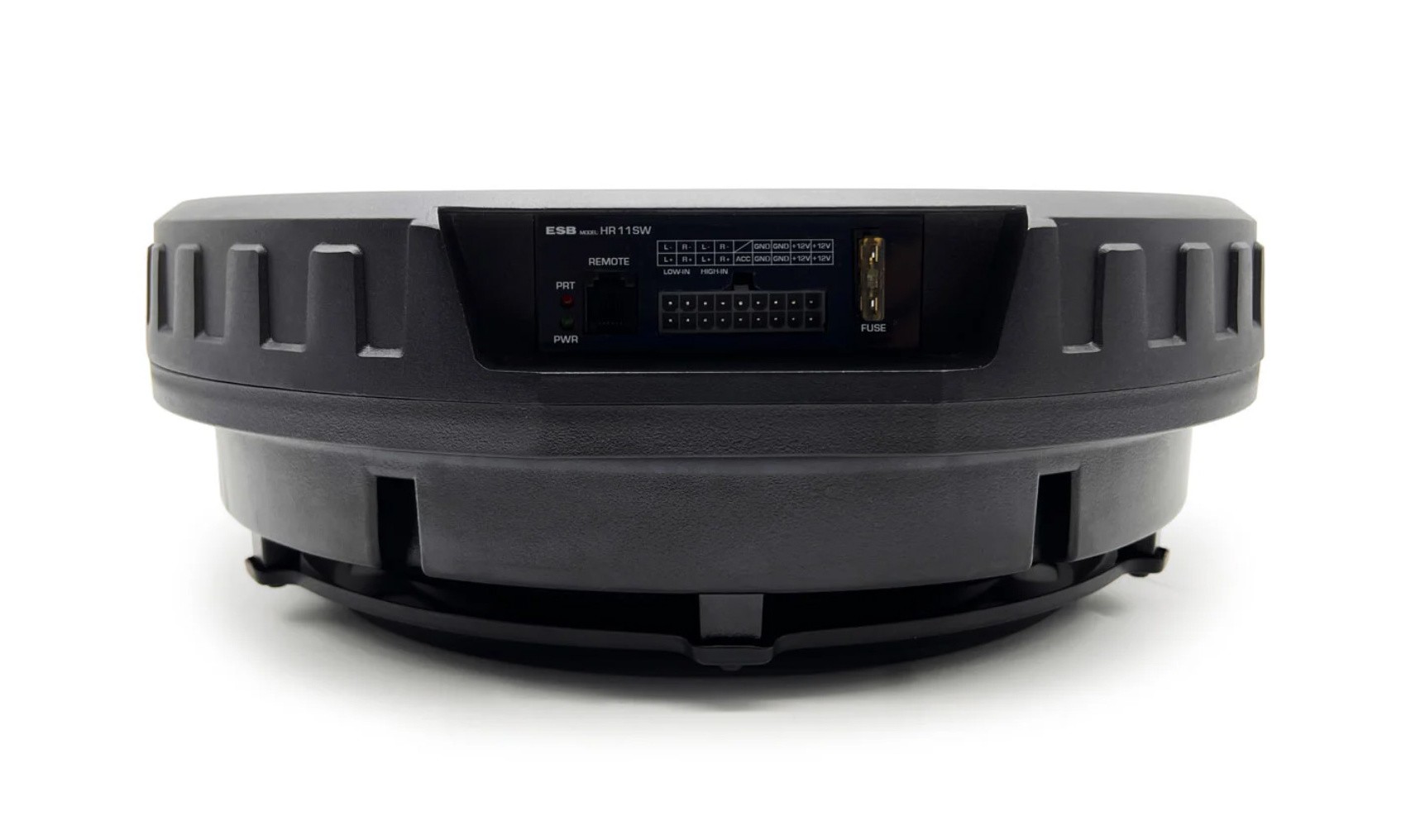 ESB Audio представя активния субуфер HR 11 SW от новата базова моделна серия Harmony, която предлага продукти с надстандартен звук, отлична изработка и незабележима инсталация в интериора на автомобила. В ESB са се фокусирали основно върху акустичното качество и надеждност, така че дори базовата серия Harmony да спазва високите стандарти на този италиански производител. HR 11 SW е активен субуфер, който удобно се побира в джантата на вашето резервно колело. Крайната инсталация е напълно скрита, но субуферът ще осигури на озвучаването ви фантастична динамика. HR 11 SW доставя мощен и динамичен звук благодарение на говорител с диаметър 11" с двойна звукова намотка и усилвател клас D с мощност 200 W RMS. Шасито от леен под налягане алуминий прави субуфера здрав, устойчив и с дълъг живот. С помощта на включеното дистанционно управление можете да настроите нивото на звука, да промените входната фаза (неинвертирана или инвертирана), честотата на пресичане от 50 до 150 Hz и усилване на басите до 12 dB. Стандартно е наличен високонаправлен вход за лесна интеграция със заводската система и можете да разчитате на автоматично включване и изключване на субуфера.