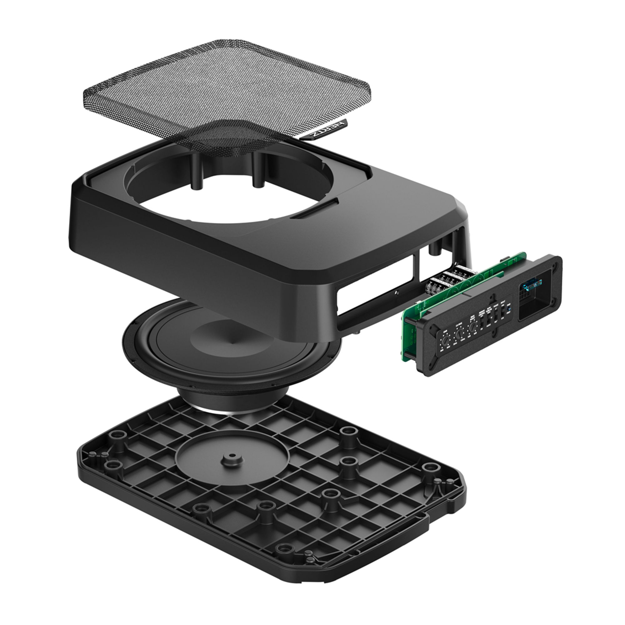 - Вграден усилвател в клас D с мощност 220 W RMS.