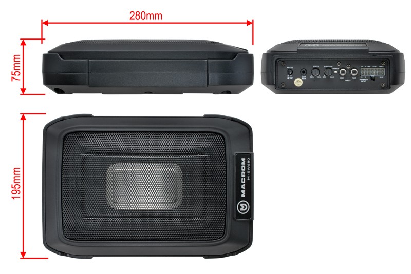 Компактен активен субуфер в кутия с вграден усилвател е идеално решение за превозни средства, където няма място за голям басов бокс. Благодарение на алуминиевото тяло с висока твърдост и 6 × 8″ (150 × 200 mm) говорител с двойна бобина предлага мощна и чиста басова основа. Подходящ е за монтаж под седалка или в багажното отделение. Защитеният говорител осигурява дълъг живот дори при ежедневна употреба. Субуферът може лесно да се свърже както чрез нискониво сигнал (RCA), така и чрез входове от високонво ниво (от говорители). За удобно управление в пакета е включено кабелно дистанционно управление, което позволява регулиране на силата на звука директно от мястото на водача.