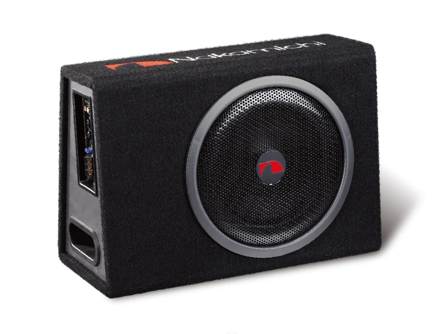 Nakamichi NBX30A е активен субуфер в басрефлекс корпус. Той съдържа говорител с диаметър 300 mm и мощност 150 W RMS, който разполага с втвърдена хартиена мембрана, мощен феритен магнит и гумено окачване за дълготрайна издръжливост. На страничната част ще намерите и контролния панел на интегрирания усилвател, който позволява да настроите gain, нискочестотния филтър (LPF), усилване на басите или фаза. Разбира се, има автоматично включване, входове с високо ниво и един чифт RCA изходи. В комплекта ще намерите и дистанционно управление, с което можете да настройвате мощността директно от позицията на водача. Субуферът е защитен с решетка с логото Nakamichi, което присъства и на горната част на корпуса.