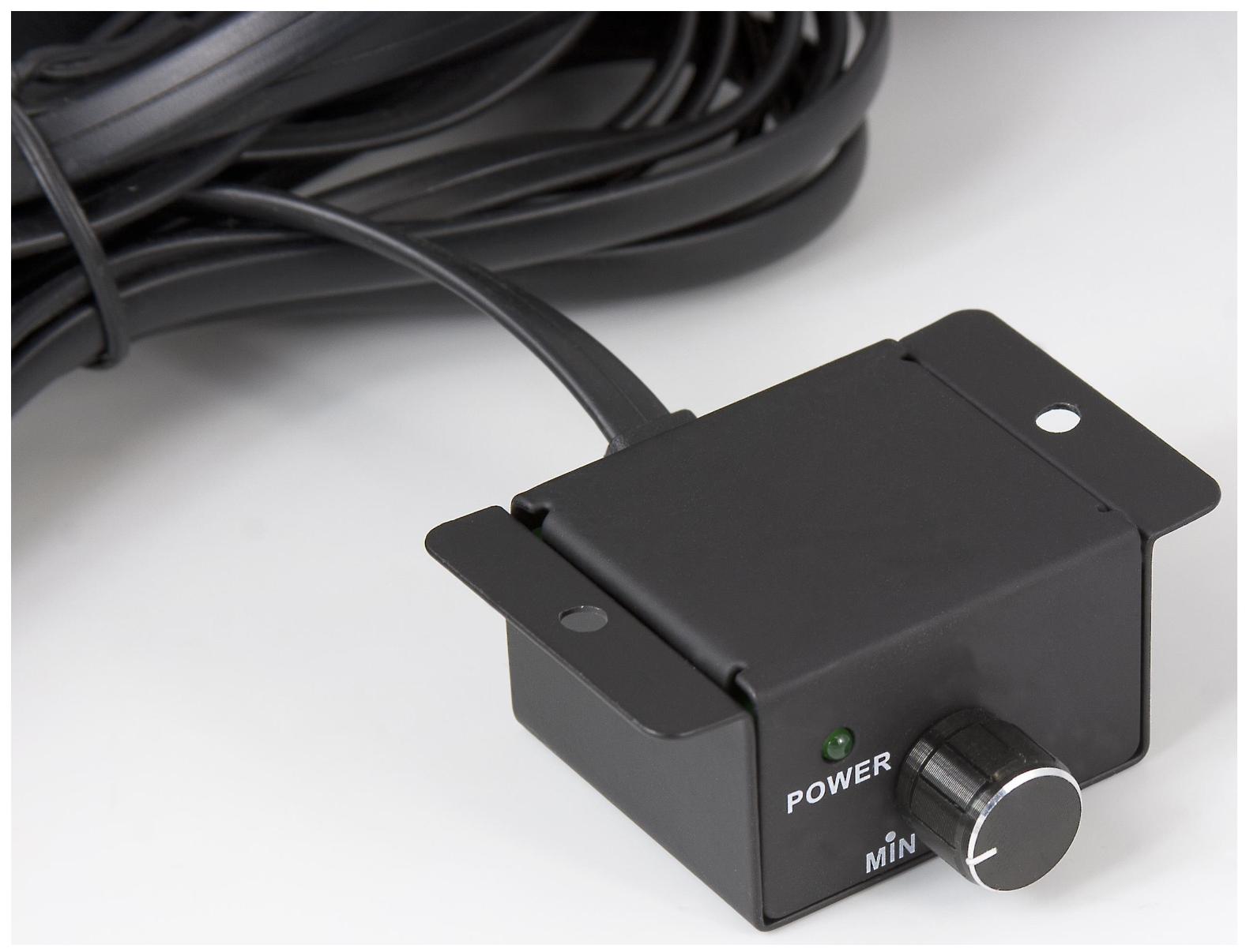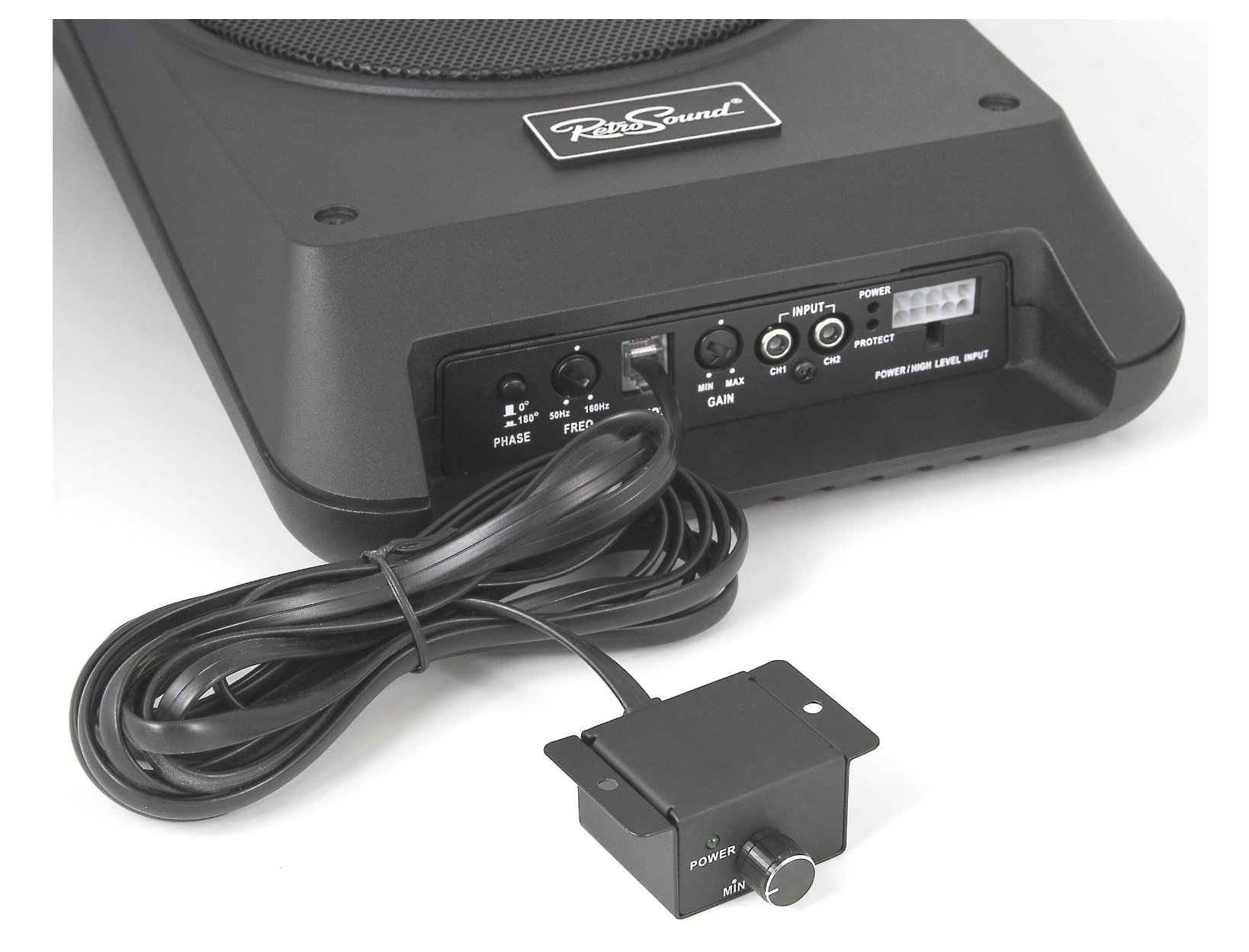 | Дистанционно управление в комплектаНякои модели активни субуфери имат в комплекта и кабелни дистанционни управления, които от едната страна се включват в активната кутия, а от другата имате потенциометър, който можете да поставите където пожелаете в купето. Обичайното място за дистанционното е пространството под волана. Предимството е регулирането на мощността, или с други думи силата на звука, в зависимост от условията на шофиране и настроението на пътниците в автомобила. | Да |