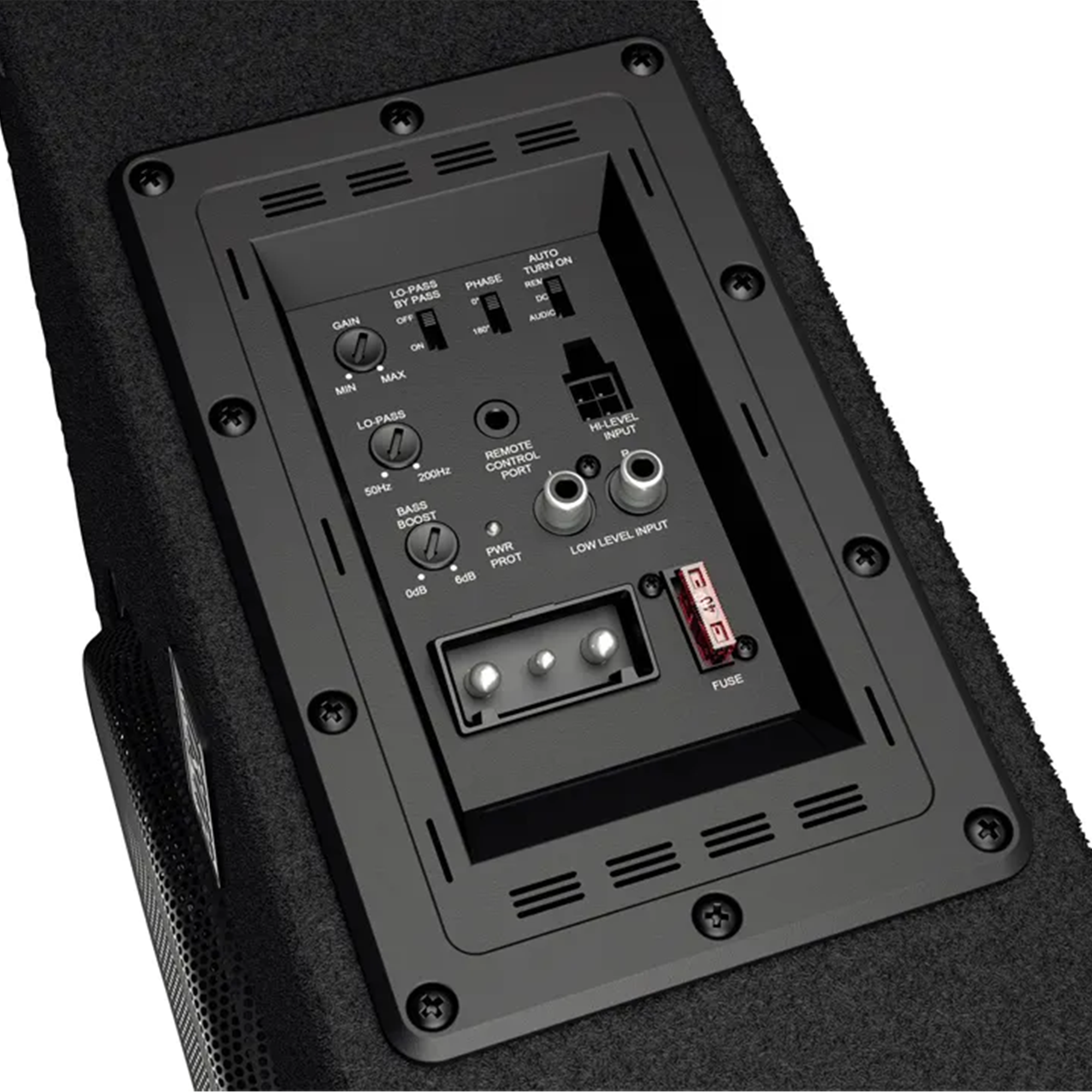 | Дистанционно управление в комплектаНякои модели активни субуфери имат в комплекта и кабелни дистанционни управления, които от едната страна се включват в активната кутия, а от другата имате потенциометър, който можете да поставите където пожелаете в купето. Обичайното място за дистанционното е пространството под волана. Предимството е регулирането на мощността, или с други думи силата на звука, в зависимост от условията на шофиране и настроението на пътниците в автомобила. | Да |