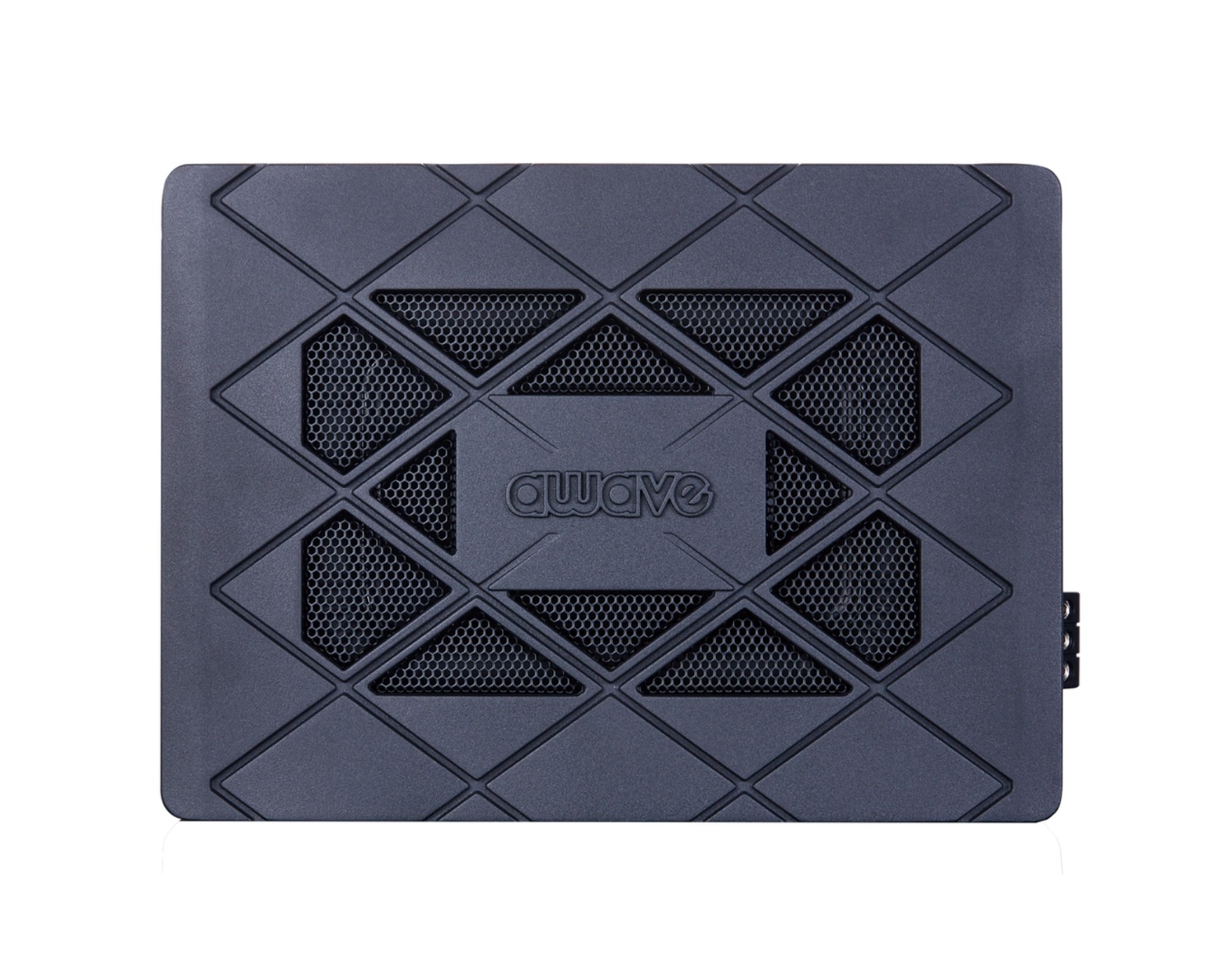 Ако монтажното пространство в автомобила е ограничено и настоящата Hi-Fi система се нуждае от "буст" в нискочестотния обхват без голямо усилие, новите активни субуфъри Awave V9M са правилният избор. Здрав говорител с твърда алуминиева мембрана с нетрадиционен размер 6 x 8" и термоустойчива гласова бобина лесно преобразува мощността на вградения цифров усилвател в впечатляващи басове. Основните предимства на субуфера са много компактните размери, благодарение на които той се побира практически навсякъде. Субуферът впечатлява и с интересен и модерен дизайн, качествена изработка и здраво алуминиево шаси. Още при повдигане ще стане ясно, че това е сериозен, тежък уред. Интензитетът на ниските честоти може да се регулира директно на шасито или чрез дистанционното управление, което е включено в комплекта. Могат да се настроят и Bass Boost, Low Pass филтър и Phase Shift. Налични са както входове с високо ниво, така и входове с ниско ниво (RCA). Идеалното решение за всички, които искат да подсилят басовата част на озвучаването и да не загубят практически никакво място в интериора на автомобила.