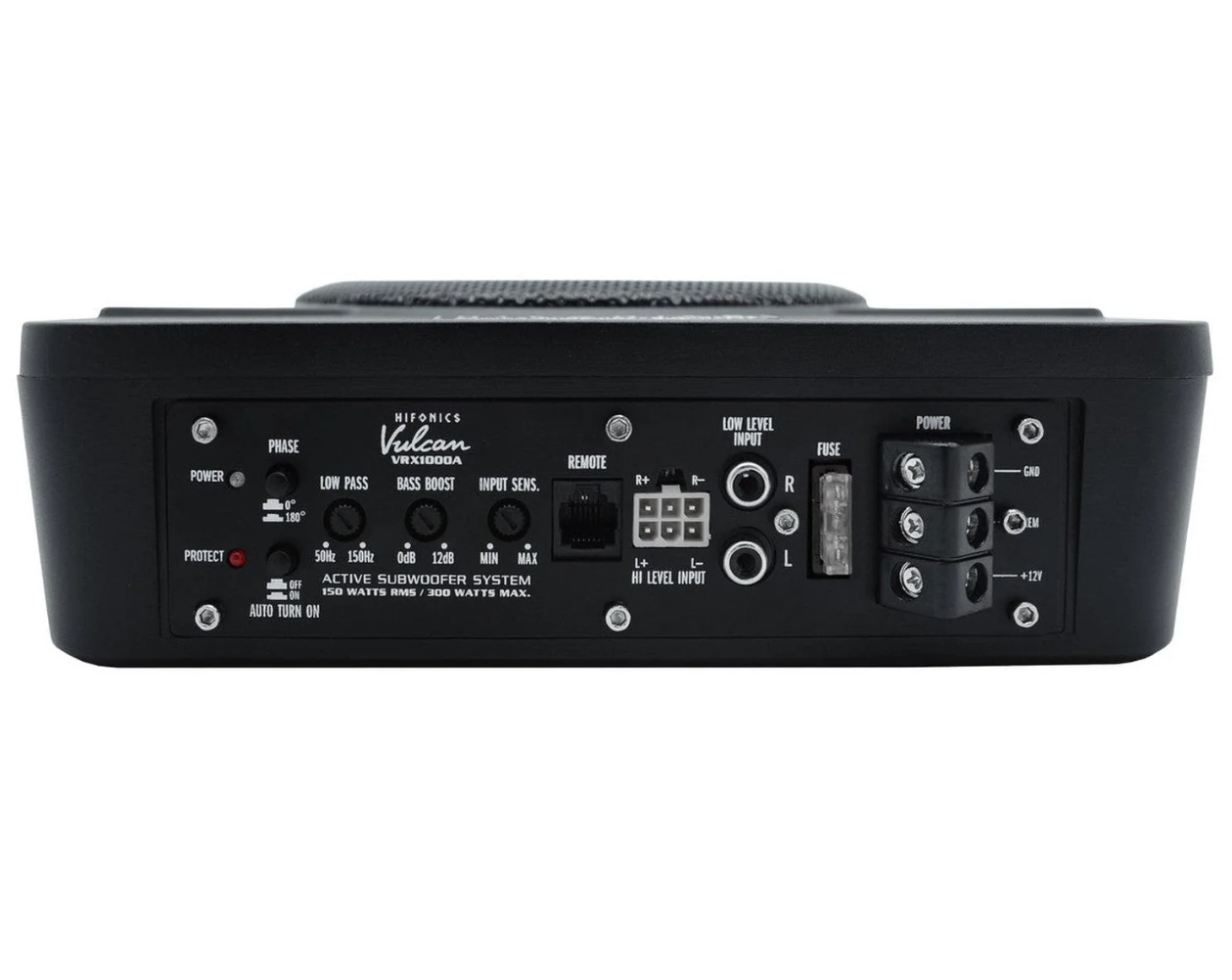 Hifonics разширява своята оферта с мощни подседалкови субуфъри VULCAN VRX в изпълнения 20 и 25 cm с изцяло алуминиево тяло. Тези субуфъри впечатляват не само с атрактивна цена, но и с високо качество на изработка и пълно оборудване, което феновете на Hifonics по целия свят ценят. За разлика от много евтини подседалкови субуфъри, където често се използват икономични усилватели или евтини интегрални схеми, и двата нови модела имат пълноценни Class A/B Mosfet крайни етапи, които са много стабилни при натоварване и винаги доставят достатъчно мощност. С максимална мощност 250 W при 8\" (20 cm) модела и 300 W при 10\" (25 cm) модела те отлично задвижват специалните нискочестотни преобразуватели. Освен това субуфърите разполагат с допълнително здрави мембрани, които издържат на високото налягане, което възниква в малките кутии при компресия на въздуха. Обичайните мембрани биха се спукали. Благодарение на регулируемия low-pass филтър, bass boost, превключваем фазов сдвиг и дистанционно управление на силата на баса, свързването със системата е почти перфектно. И двата модела имат и high-level вход с автоматично включване, така че могат да се свържат и към фабрични автомобилни радиоапарати без cinch изход.