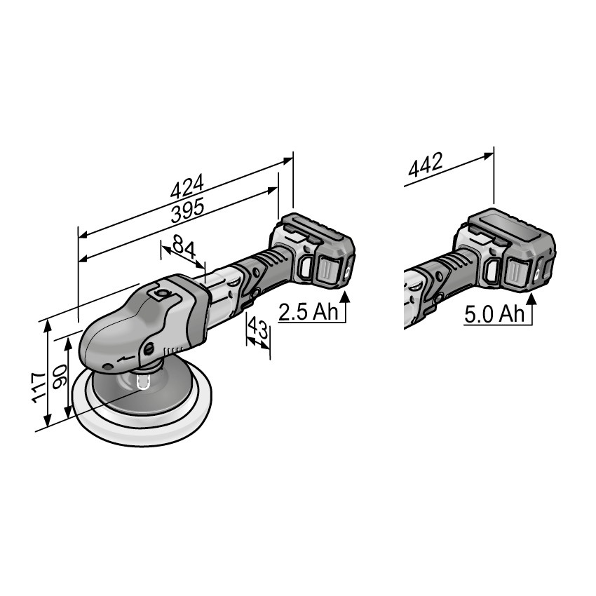 - Капацитет на акумулатора: 2,5 / 5,0 Ah.
