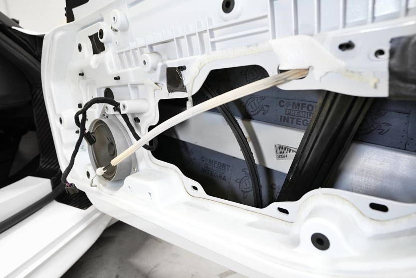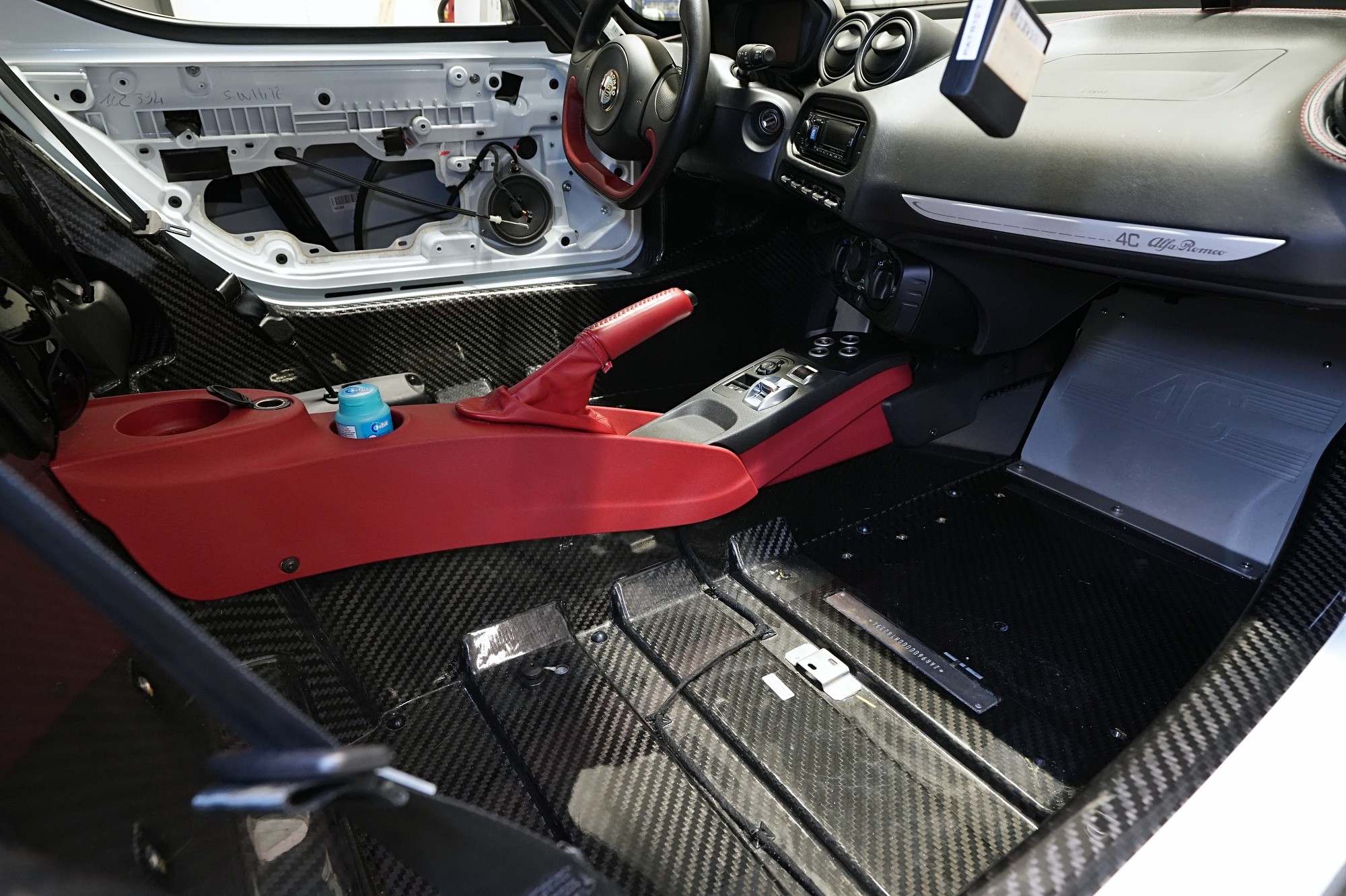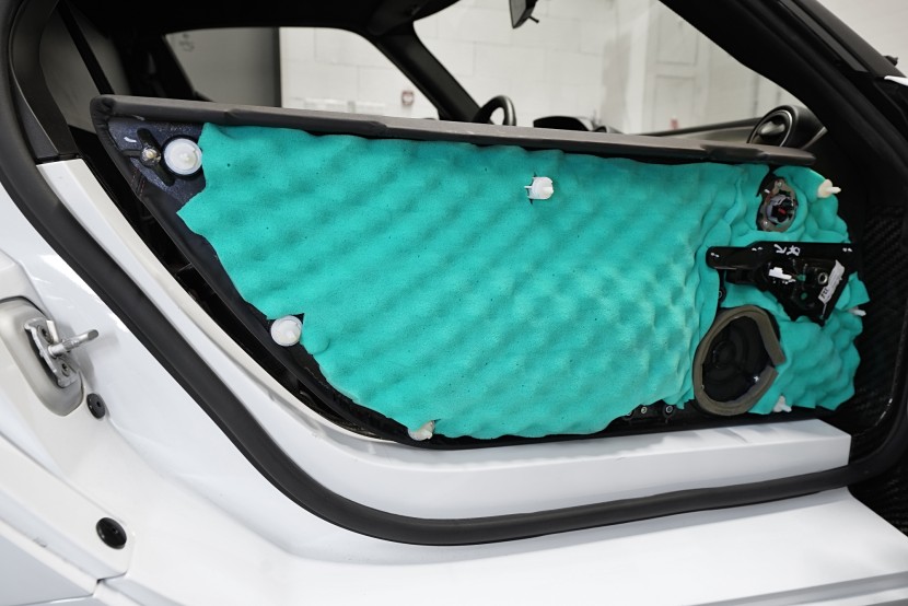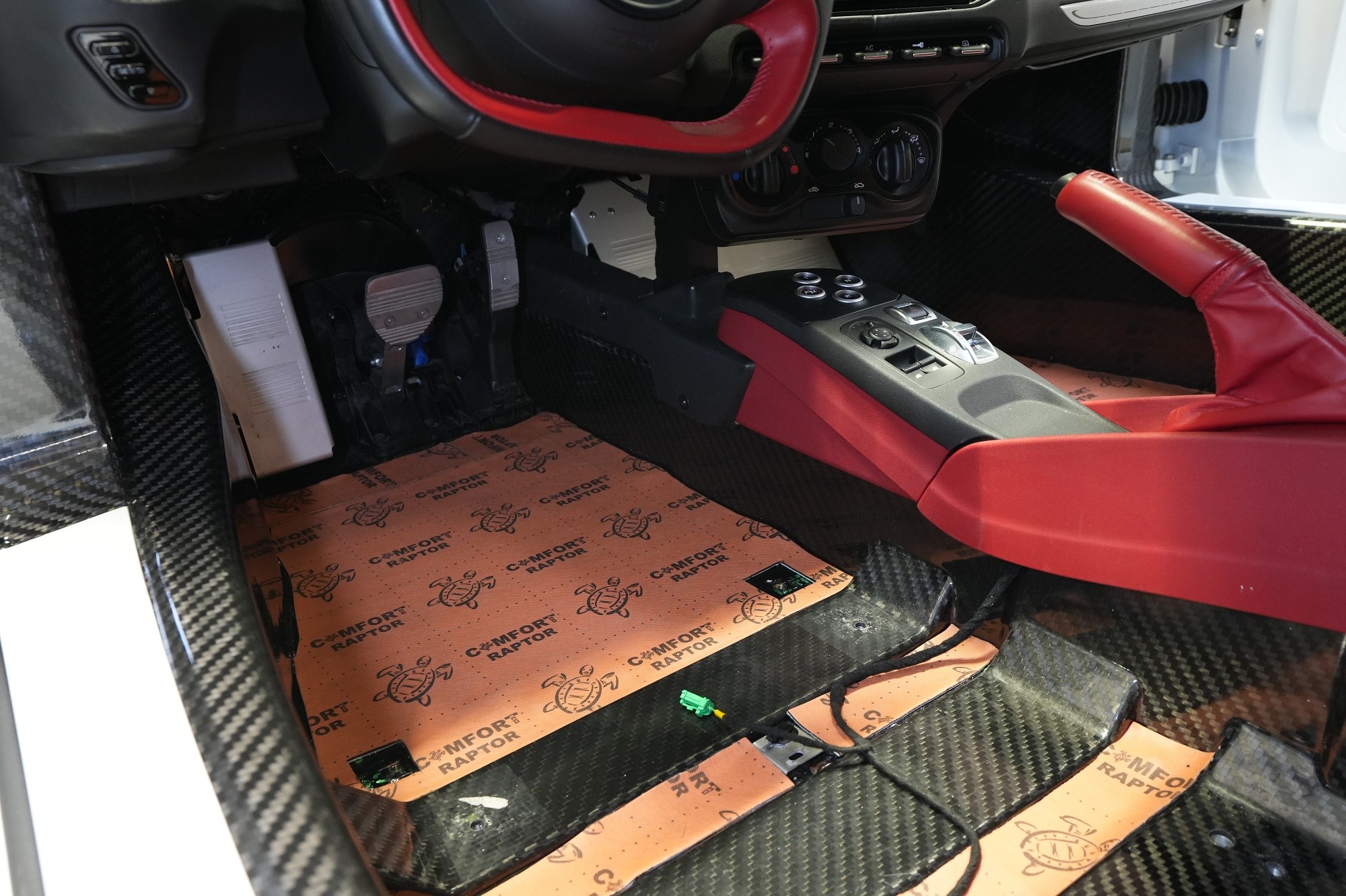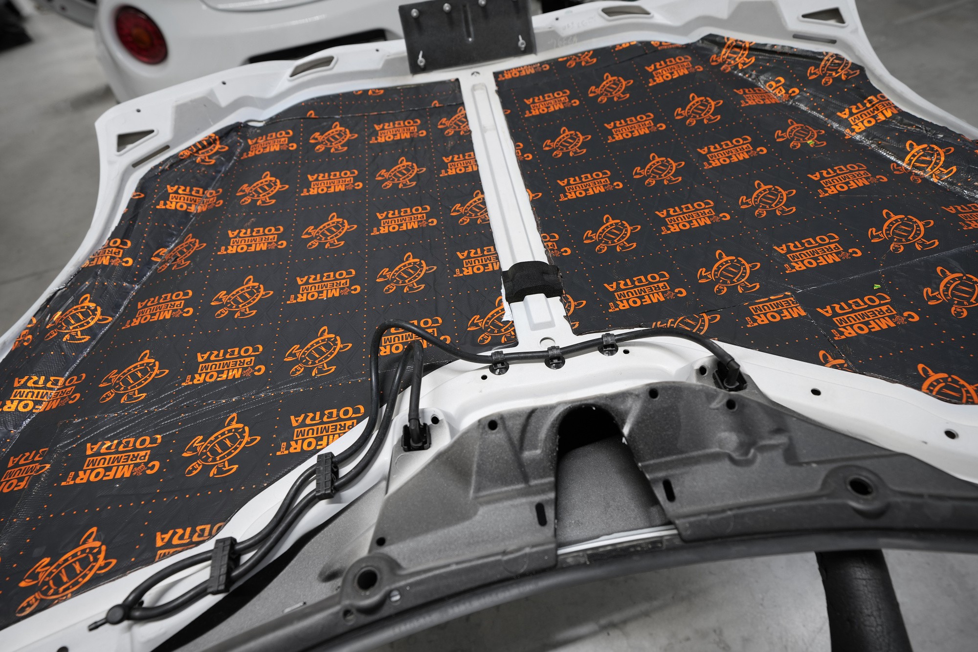 Този път в нашия сервиз се появи много интересен автомобил, а именно спортният Alfa Romeo 4C. И може би неочаквано за много от нашите последователи – за шумоизолация. Този лек и забавен автомобил с двигател с мощност 240 коня се струваше на собственика си прекалено некомфортен. Не е изненада, че този автомобил има напълно различни предимства от заводската звукова изолация. Тя от своя страна почти липсва, за да се намали максимално теглото на автомобила с цел по-добри пътни характеристики. Опитахме се да намерим компромис между оптимално тегло и висока ефективност, което беше основната цел на собственика. Крайното количество от 27 kg материали считаме за приемлива стойност за запазване на отличните шофьорски качества с подобрен комфорт. За шумоизолацията на този автомобил се базирахме на нашия пакет шумоизолация Expert Plus, който индивидуално адаптирахме към нуждите на този автомобил. Над стандартната инсталация допълнително направихме облицовка на пода и задната част на автомобила, за да покрием новоаплицираните материали, тъй като този автомобил от завода няма никаква тапицерия. На автомобила работеха 2 от нашите техници едновременно и монтажът беше завършен в рамките на 1 работен ден.