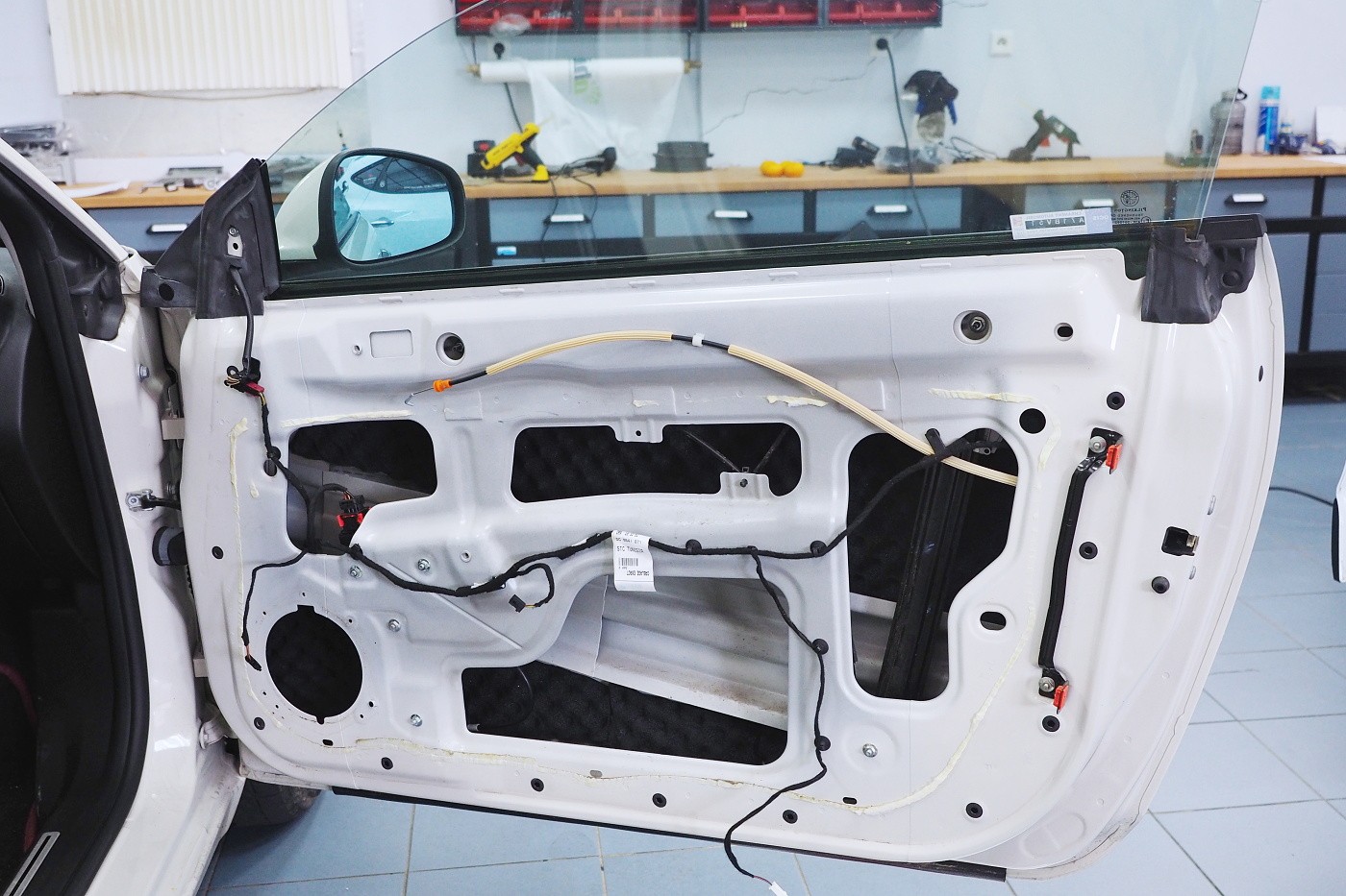 Смяна на говорителите в автомобил Alfa Romeo Mito. Заводските говорители в предните врати и задните страни заменихме с компоненти на германския производител Gladen, които са отличен избор за висококачествено подобрение на звука. Благодарение на високата чувствителност и намалената импеданса до 3 ома тези говорители са подходящи и при свързване към заводското авторaдио, което ще им осигури адекватна мощност. Шумоизолацията на вратите ще подобри басовата съставка и звука на средния бас и ще предотврати нежелани вибрации.