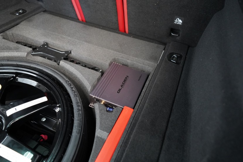 Вид на инсталациятаMontáž subwooferu do bočnice kufru