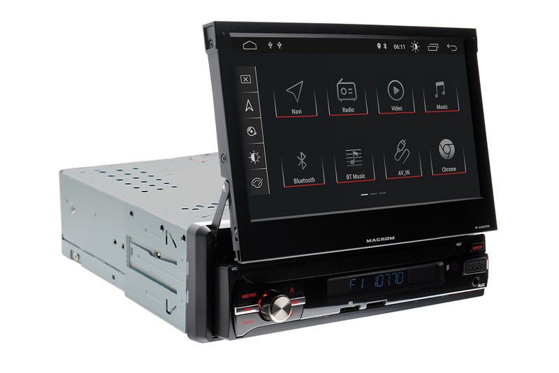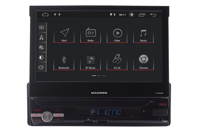 Macrom M-AN6560 е мултимедийно устройство с операционна система Android. Размер 1DIN и 7" капацитивен дисплей във вид, който се издърпва моторно от корпуса на устройството, позволява инсталация в редица автомобили, където до сега не е било възможно да се монтира устройство с този размер монитор. Устройството е оборудвано с усилвател 4 x 45 W, AM/FM тунер, Bluetooth handsfree комплект с поддръжка на поточно предаване на музика, USB портове, вход за задна и предна паркинг камера, вграден GPS приемник, Wi-Fi. Операционната система Android 9.0 позволява да използвате устройството както използвате смартфон или таблет. Можете да четете имейли, да търсите информация в интернет, да възпроизвеждате музика или видеа в YouTube, да инсталирате любими приложения и много други функции.