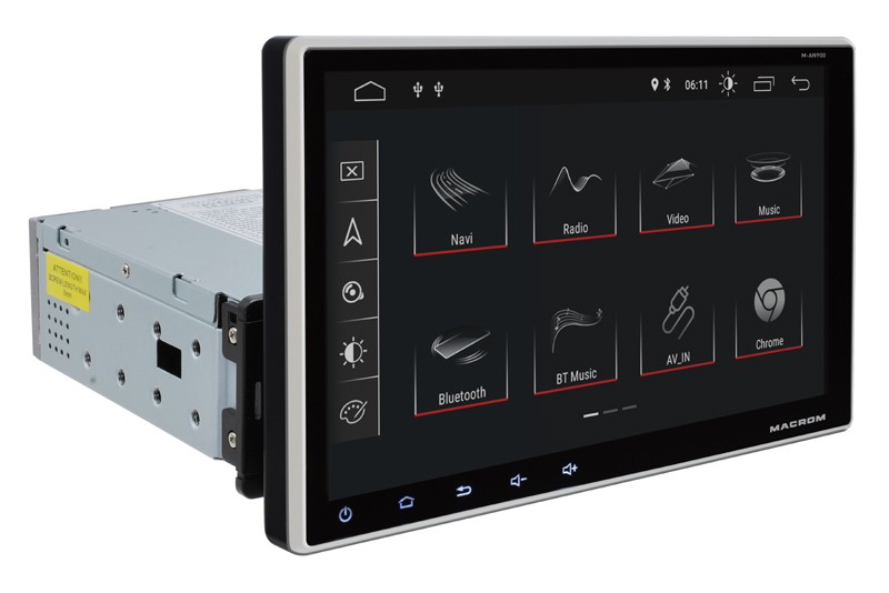 Macrom M-AN900 е мултимедийно устройство с операционна система Android Oreo 8.1. Размер 1DIN и 9" капацитивен дисплей във вид на таблет позволява инсталация в редица автомобили, където до сега не е било възможно да се монтира устройство с този размер монитор. Устройството е оборудвано с усилвател 4 x 45 W, AM/FM тунер, Bluetooth handsfree комплект с поддръжка на поточно предаване на музика, три задни USB конектора, вход за задна и предна паркинг камера, вграден GPS приемник, Wi‑Fi. Операционната система Android Oreo 8.1 позволява да използвате устройството както използвате смартфон или таблет. Можете да четете имейли, да търсите информация в интернет, да възпроизвеждате музика или видеа в YouTube, да инсталирате любими приложения и много други функции.