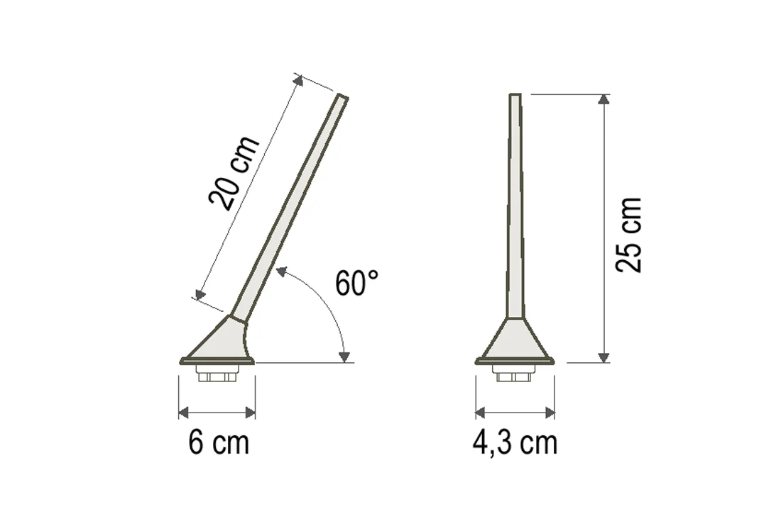 - Размери на основата: 6 x 4,3 cm.
