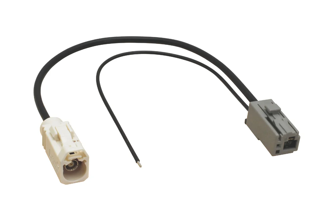 - Антенен адаптер за инсталиране на автомобилна антена с FAKRA женски конектор към автомобили с кабел на антената, завършващ с GT13 женски конектор.