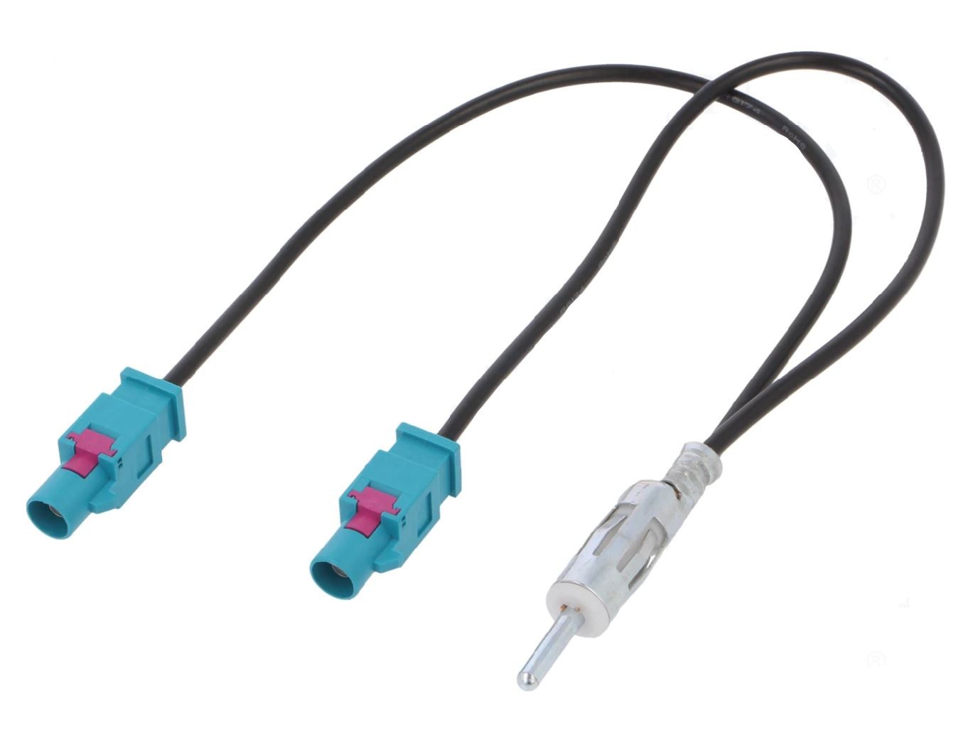 - Антенен адаптер за монтиране на автомобилно радио с DIN антенно гнездо в автомобили с две антени, завършващи с FAKRA конектор