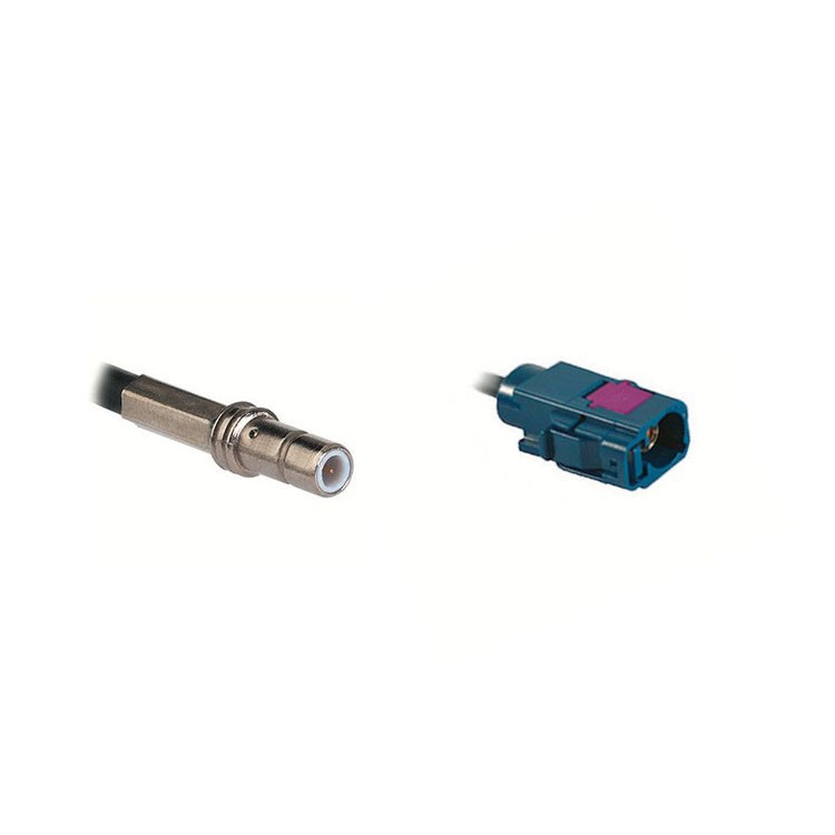 - Антенен адаптер за инсталиране на автомобилна антена с SMB мъжки конектор в автомобили, чиито кабел на антената завършва с FAKRA мъжки конектор.