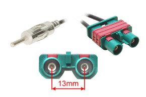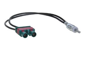 - антенен адаптер за свързване на OEM антенен конектор към инсталирано автомобилно радио с DIN антенен жак