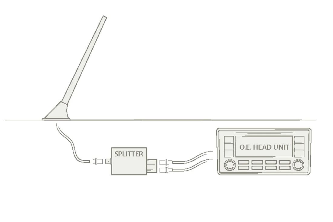 За свързване на автомобилно радио или навигация с два антенни входа към автомобили с една автоантена.