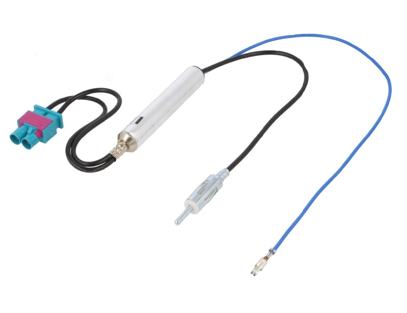 Захранващ адаптер за антени за автомобили с антена, която има усилвател, захранван през антения кабел (фантомно захранване). Използва се при инсталиране на нестандартно автомобилно радио.- Антенен конектор от антената в автомобила FAKRA - 2x отделен конектор