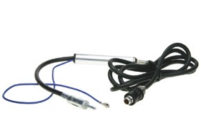 Антенен захранвач за автомобили с антена с усилвател, захранван по антенния кабел (фантомно захранване). Използва се при инсталация на неоригинално автомобилно радио.- антенен конектор от антената в автомобила RAKU (женски)