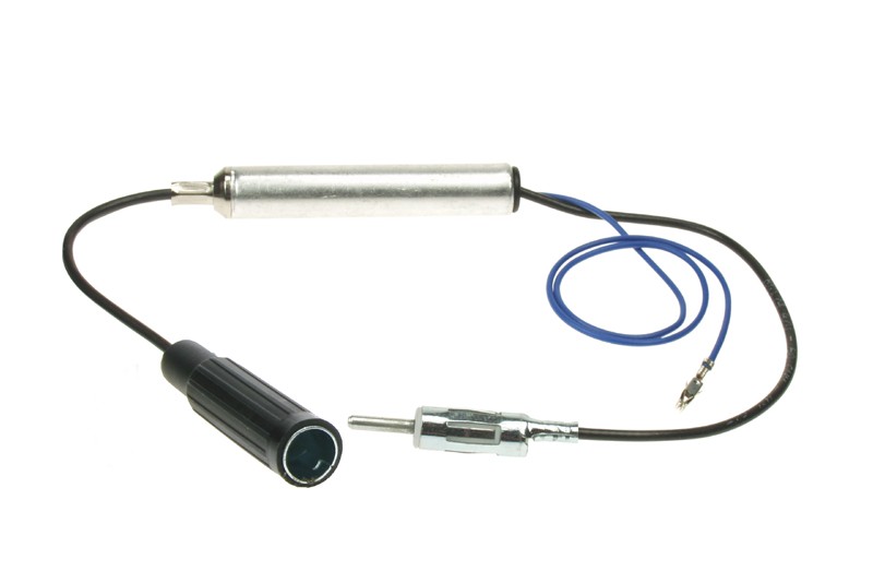 Антенно захранване за автомобили с антена с усилвател, захранван по антенния кабел (фантомно захранване). Използва се при инсталиране на неоригинално автомобилно радио.- антенен конектор от антената в автомобила DIN (мъжки)