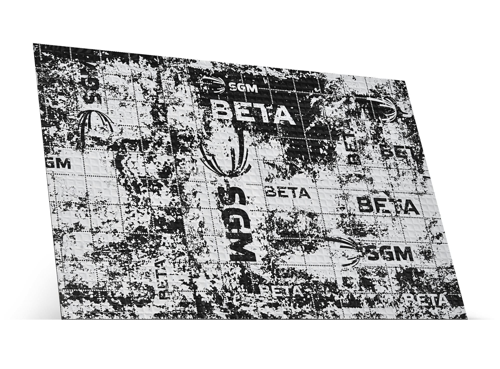 SGM Beta 2 е модерен антивибрационен материал от серията Beta, предназначен за ефективно заглушаване на вибрации и резонанси на купето на автомобила. Произведен е от полимерна бутийлова гума и алуминиево фолио с дебелина 60 микрона. Фолиото има квадратна релефна структура, матово черно-бяло покритие с логото на производителя, докато монтажната страна е защитена със силиконизирано фолио за лесен монтаж. SGM Beta 2 се отличава с подобрена адхезия, по-висока ефективност и по-добра механична стабилност в сравнение с базовата серия Base. Високият акустичен загубен коефициент MLF = 0,37 заедно с дебелина 3 мм осигуряват отлични свойства за зони с по-високо вибрационно натоварване, например пода, багажното отделение или моторната преграда. Материалът е устойчив на вода, влага, масла и предоставя дълготрайна антикорозионна защита.