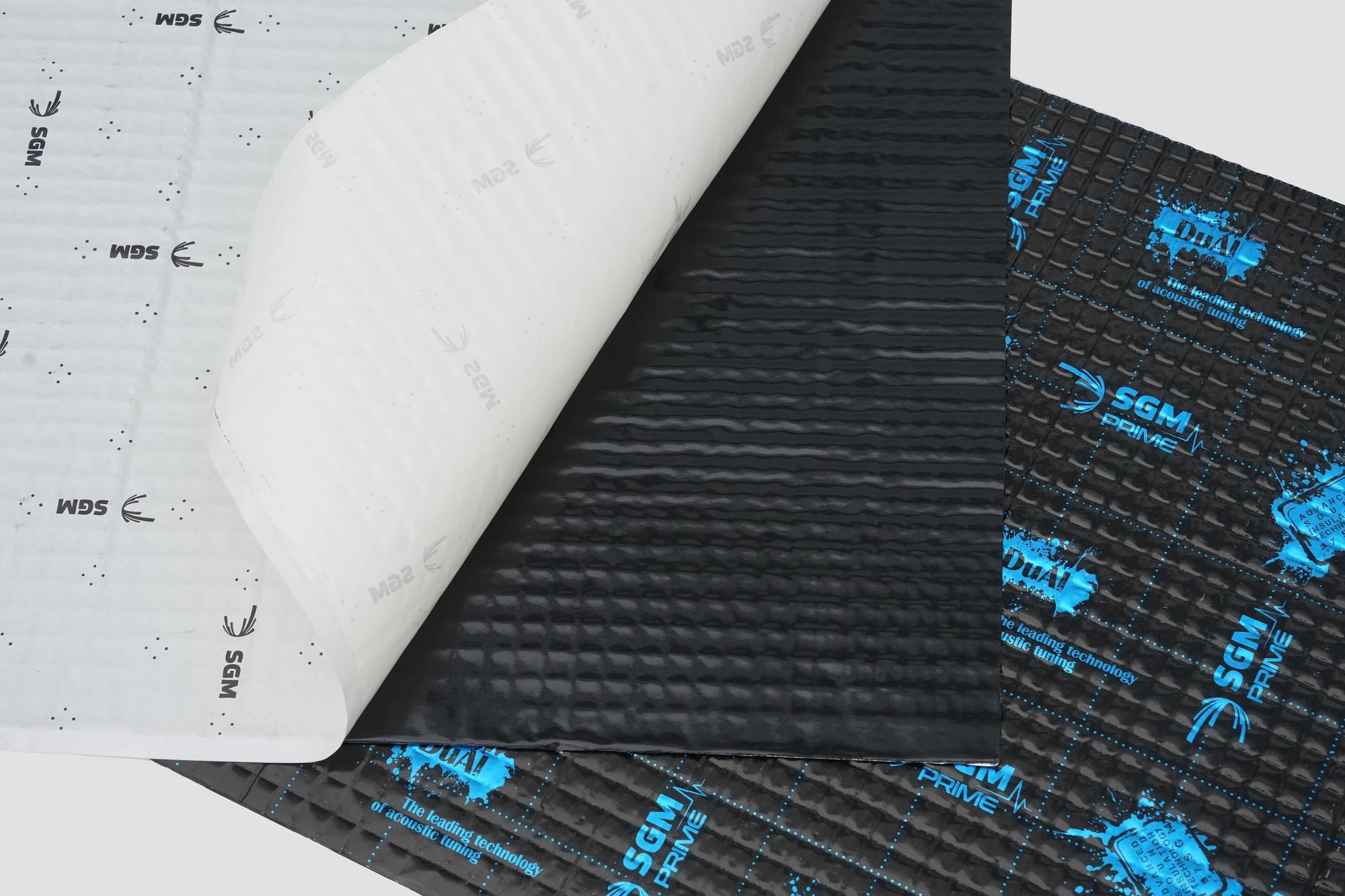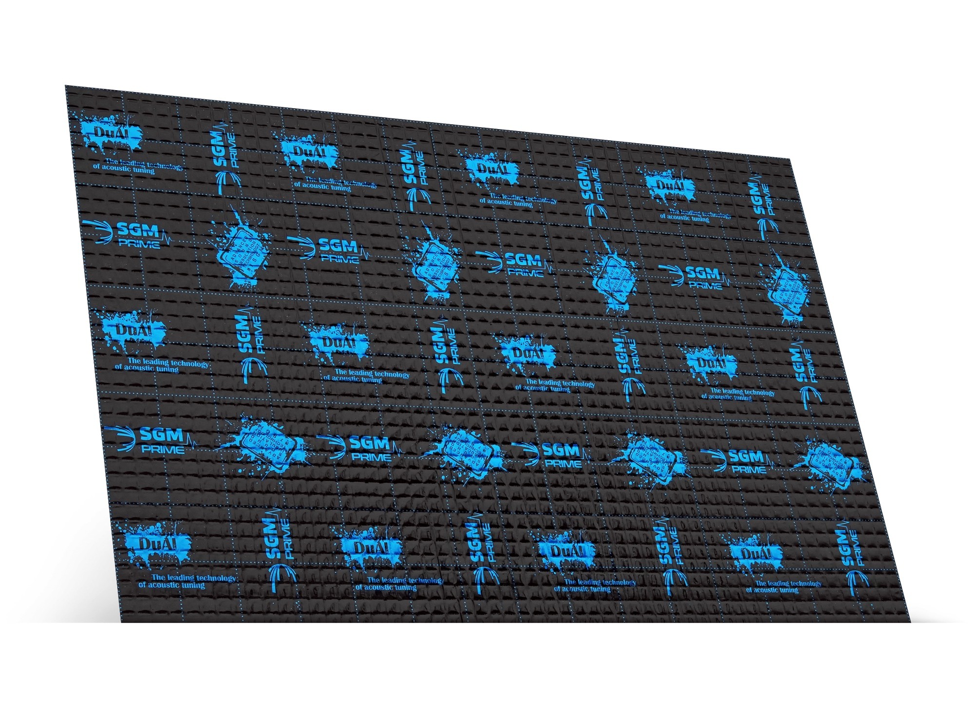 SGM Prime Dual е предназначен за най-силно натоварените части на каросерията, където е необходимо да се постигне абсолютно потискане на вибрациите и резонансите. Поради своята конструкция се препоръчва особено за пода, калните арки и моторната преграда, където предоставя максимална ефективност при запазване на разумно тегло. Dual не изисква нагряване дори при своята дебелина; достатъчно е да бъде оставен на стайна температура преди инсталация. За правилната функция е необходимо при приложението да се използва притискащ валяк. Най-често използване:- Под.