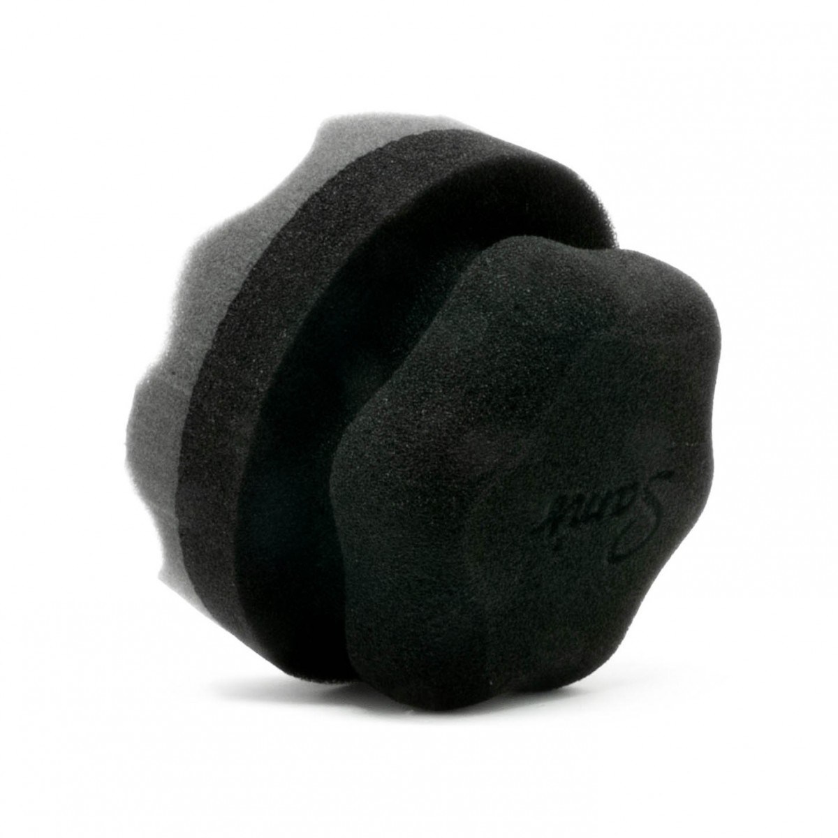 Премиален ръчен апликатор за нанасяне на блясъци, восъци и защитни препарати върху гумите. Стои отлично в ръката и работата с него е много по-прецизна и най-вече по-удобна за дясната ръка. Апликаторът може да се пере в пералня, както и микрофибърните кърпи.