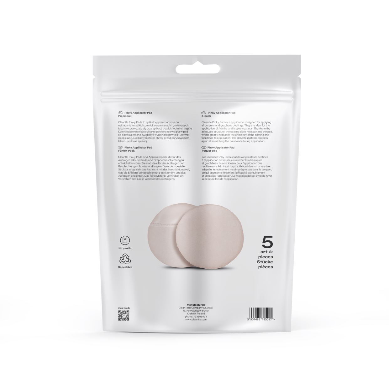 Cleantle Pinky Pads са апликатори предназначени за нанасяне на всички керамични и графенови покрития. Те са идеални за нанасяне на покритията Admire и Inspire от Cleantle. Също така са отлични за грижа и защита на интериора на вашия автомобил. Могат да се използват при нанасяне на всички видове интериорни защити, кондиционери за кожена тапицерия и др. Благодарение на структурата си те перфектно разнасят препарата върху повърхността и оставят равномерен защитен слой.