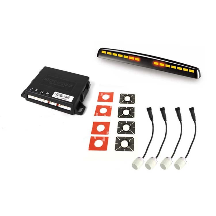 Асистент за паркиране Steelmate със 4 сребристи вградени сензора 16 mm и LED дисплей с двуцветен индикатор M5 - предназначен за монтаж в предната броня на автомобила. Електронно наблюдава пространството пред автомобила при паркиране и ви сигнализира звуково или оптично при установяване на препятствие. Колкото по-близо сте до препятствието, толкова интервалът на звуковите сигнали се скъсява, докато накрая тонът стане непрекъснат (0,3 m). Включва функция за автоматична проверка на сензорите. При необходимост системата може да бъде свързана само с два сензора.