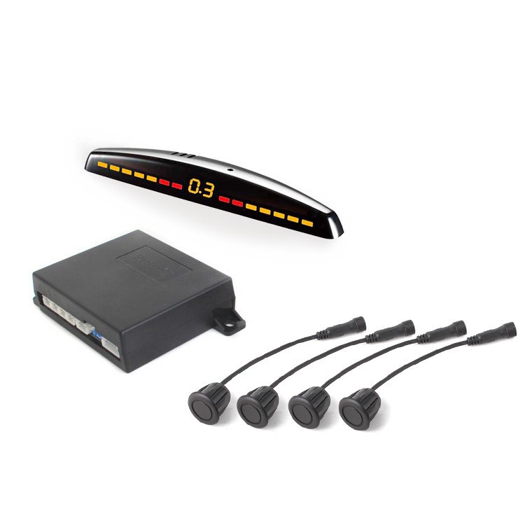Асистент за паркиране Steelmate с 4 черни датчика 14D-10 и LED дисплей M7 с цифров двуцветен индикатор - предназначен за инсталация в задната броня на автомобила. Дисплеят е предназначен за монтаж на таблото, или на вътрешното огледало, или за таванен монтаж (наблюдение чрез отражение във вътрешното огледало). Цифрите на дисплея се показват в огледално обърнат вид след настройка. Системата включва функция Antihook (игнориране на теглича на автомобила), автоматична идентификация на дефектен датчик и е допълнена с нови функции за настройка на чувствителността и обучителна функция. Комплектът включва 4 бр. датчици за паркиране, електронен блок, дисплей и кабели. Захранващо напрежение 12V.