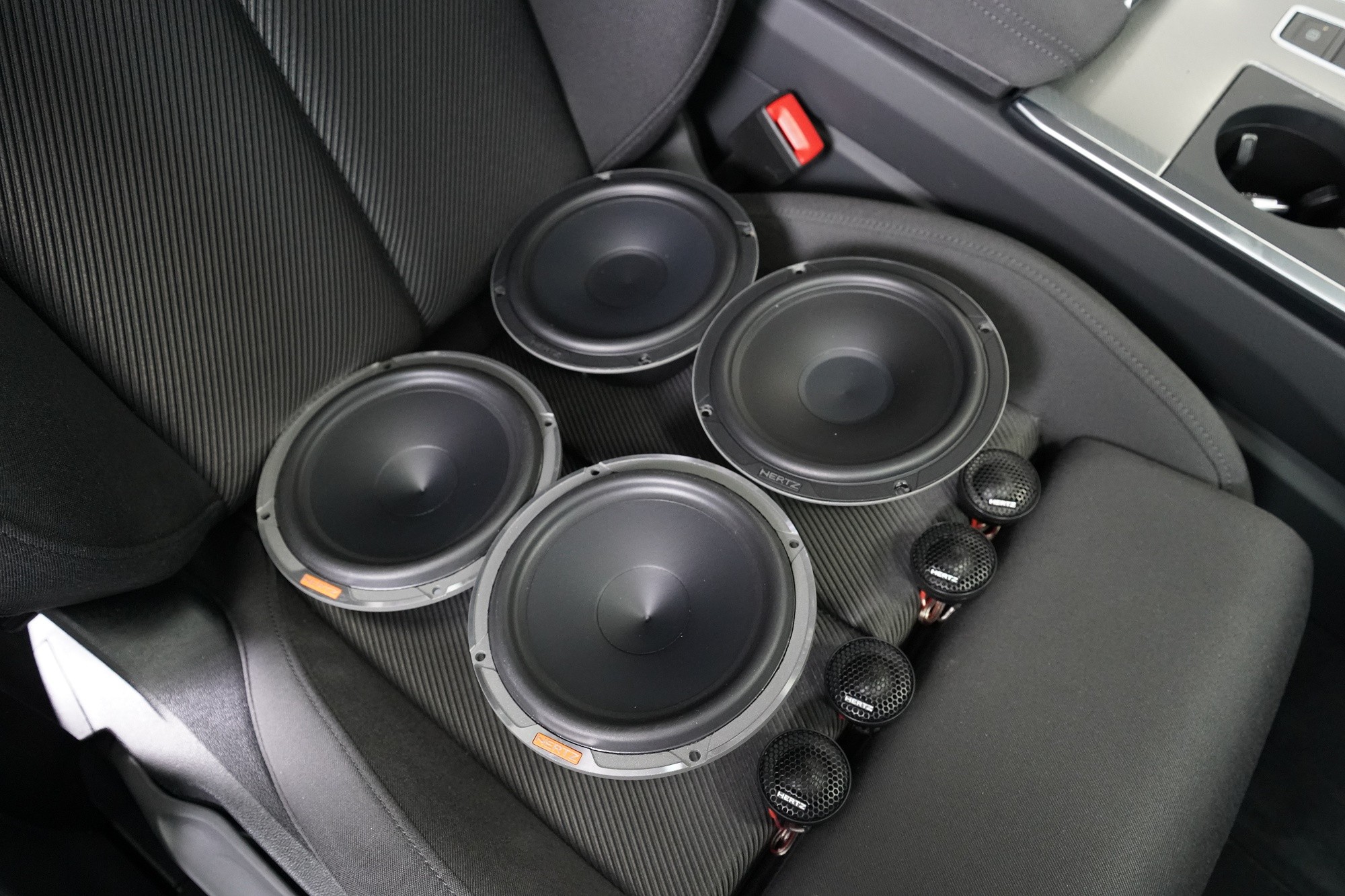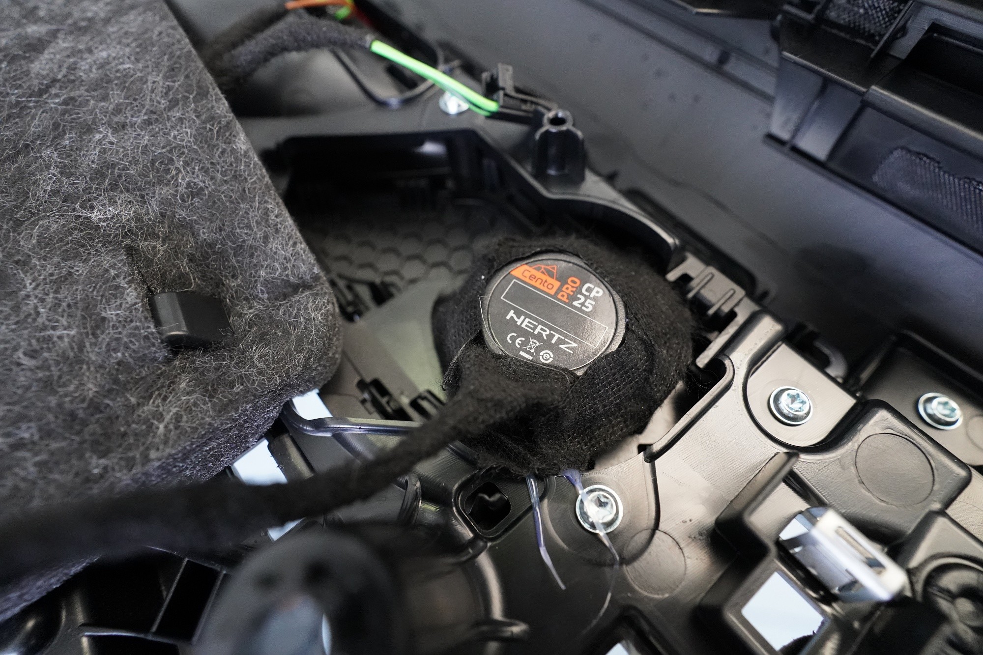 Вид на инсталациятаKompletní ozvučení - montáž reproduktorů, zesilovače a subwooferu