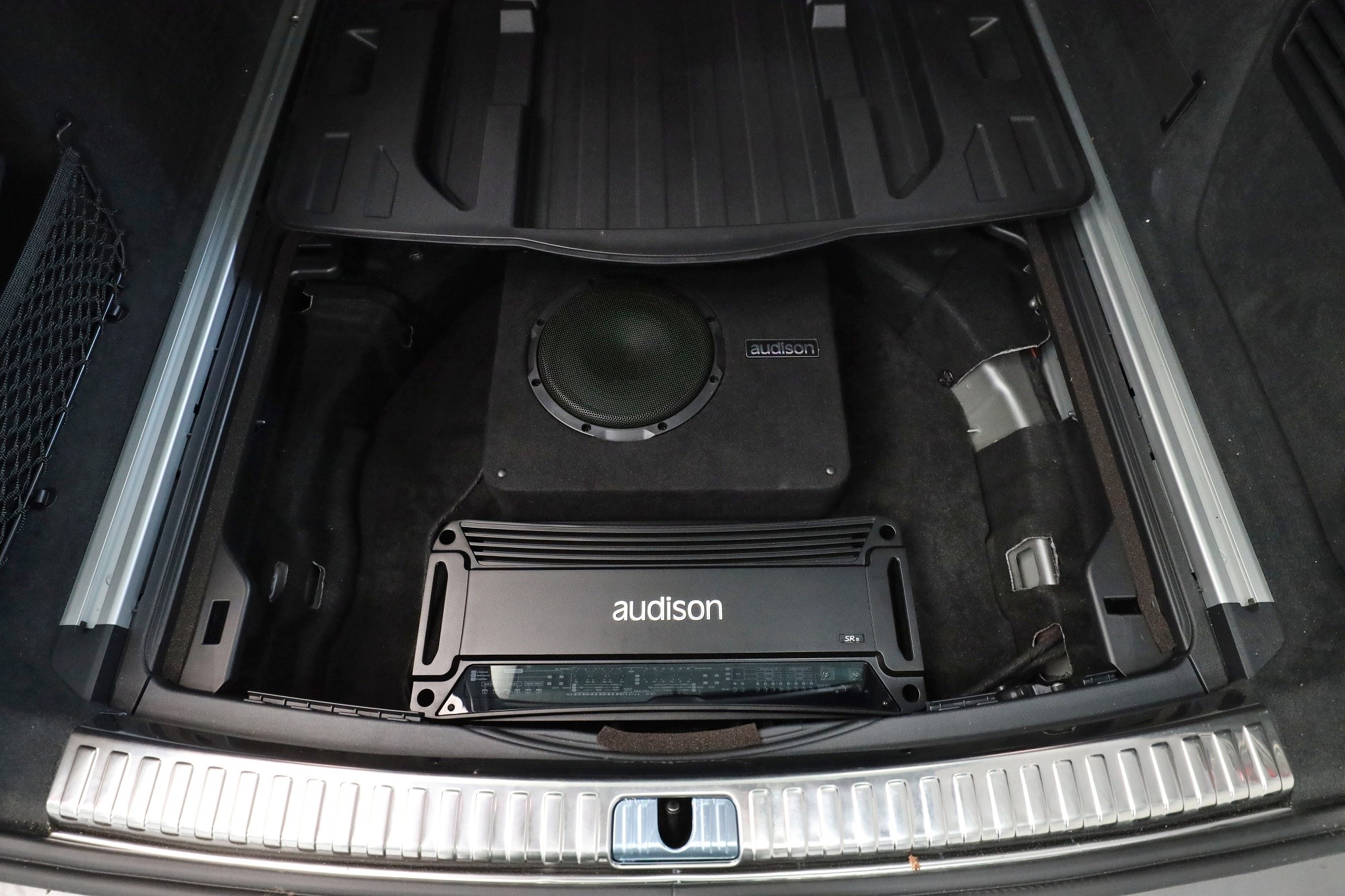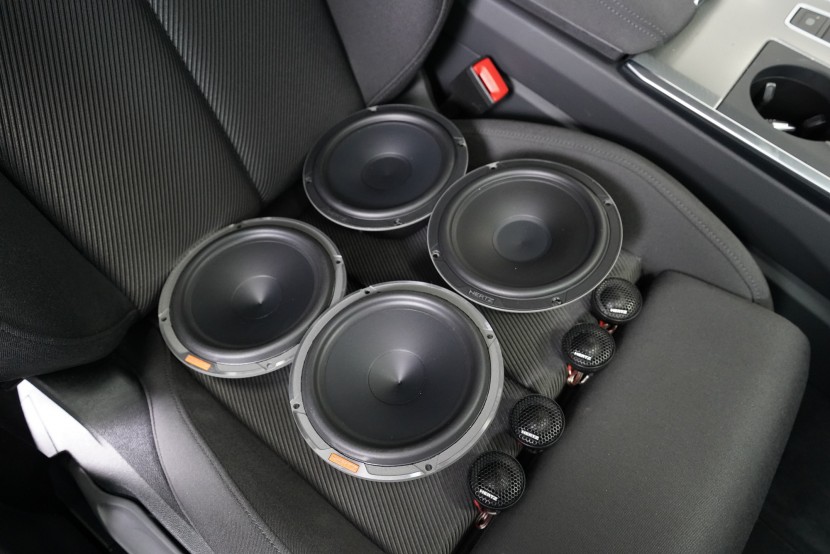 Озвучаване на Audi A6 Avant, който в оборудването имаше само базово озвучаване. За съжаление качеството на звука не удовлетворява дори по-малко взискателен слушател и затова беше необходимо да се смени цялата система. В предните врати избрахме компонентни говорители Hertz от най-високата серия Mille, а в задните врати говорители на същата марка от серията Cento. Всички говорители свързахме към качествен петканален усилвател Audison SR 5, който осигурява не само достатъчна мощност, но и много качествен звук. Същият усилвател захранва и малък 8" субуфер, който монтирахме в двойното дъно на багажника. Този субуфер в малък затворен обем, въпреки малките си размери, изпъква с много качествен звук с прецизни и бързи баси. Новото озвучаване разполага с несравнимо по-качествен звук, допълнен от дискретна басова част, а интериорът на този красив автомобил остана разбира се в оригиналния си вид.