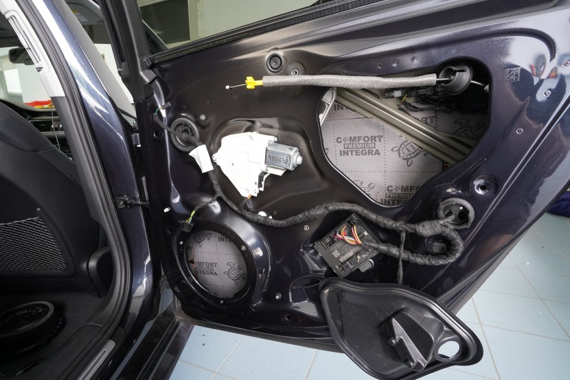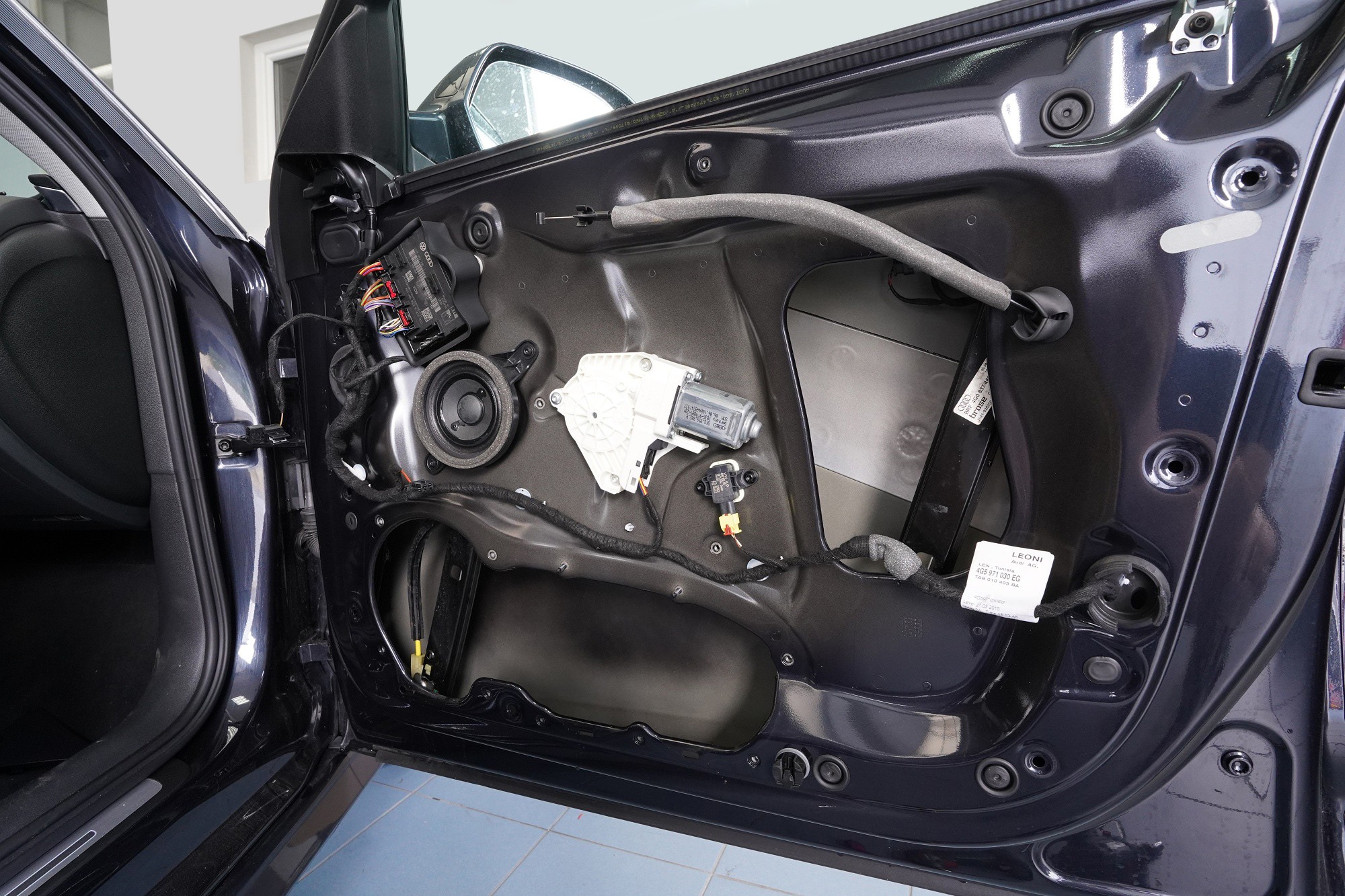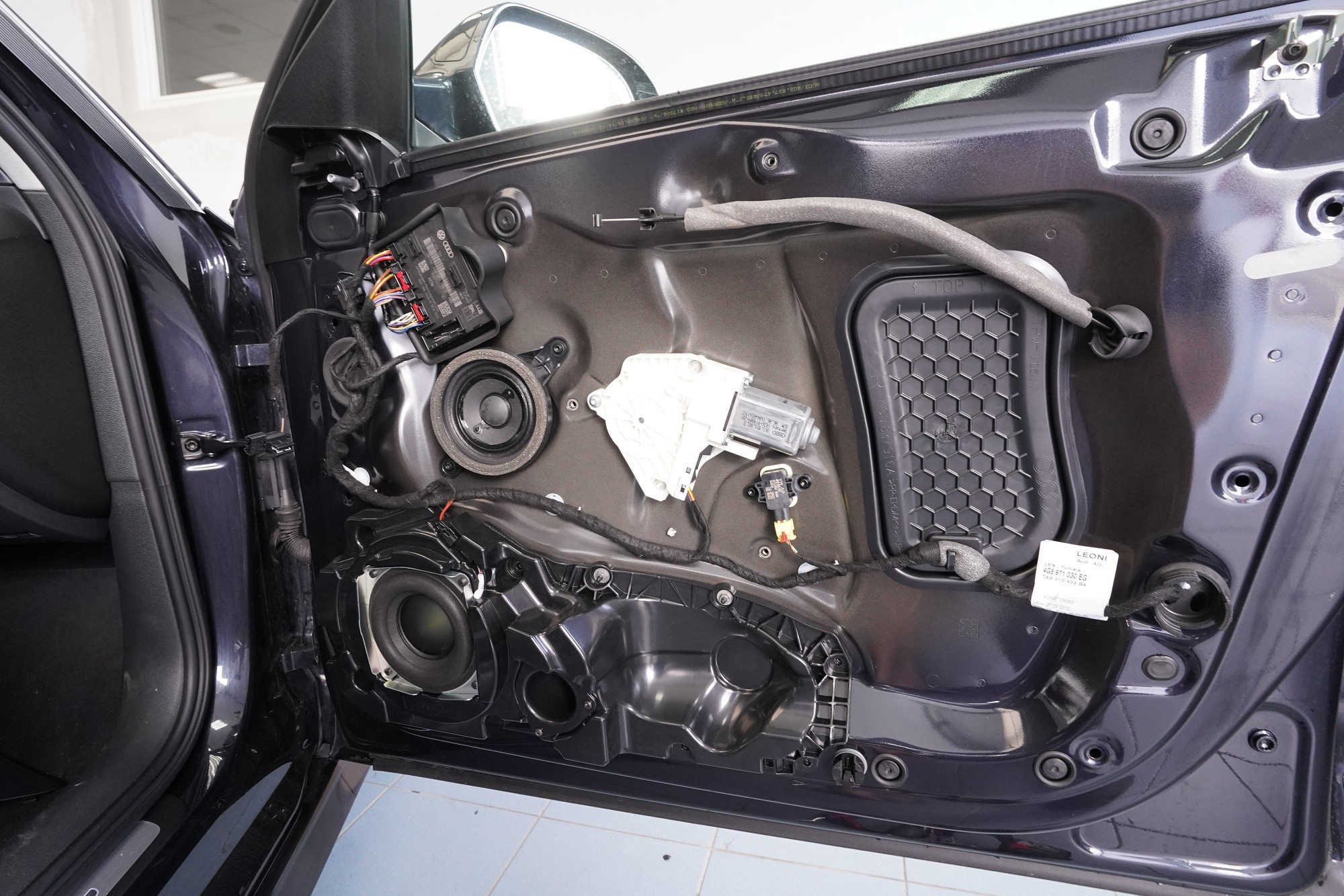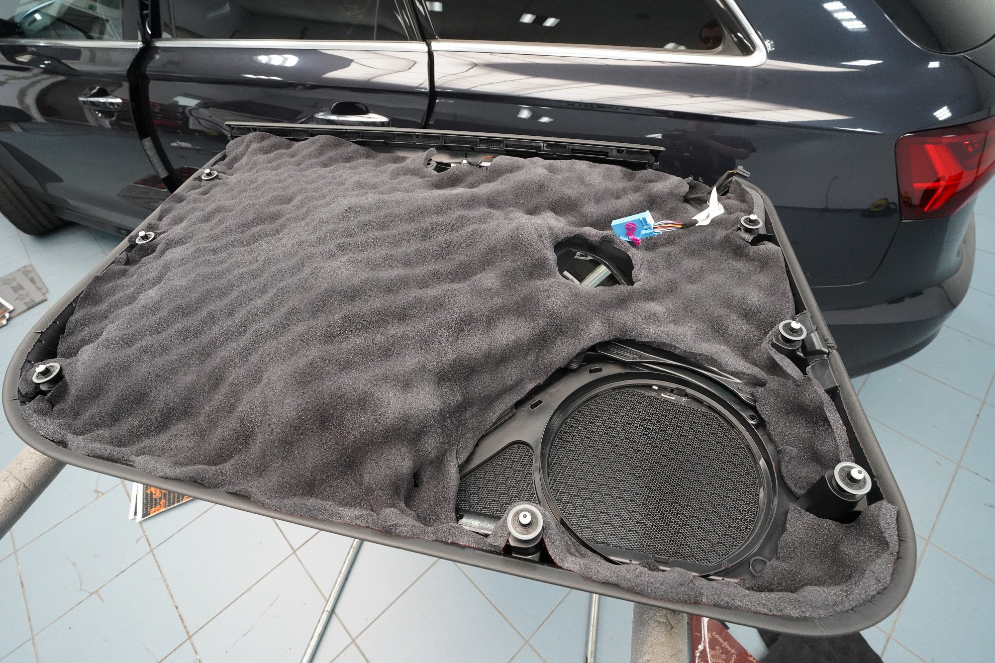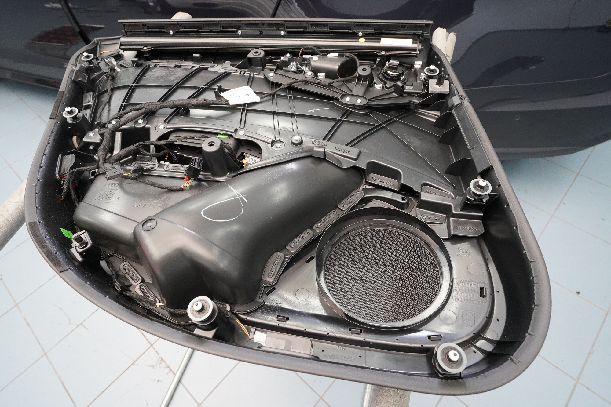 Шумоизолация на предни и задни врати на Audi A6. Ако искате да намалите шума в интериора на автомобила, подходящо решение е да започнете именно от вратите. През тях прониква голямо количество шум в интериора и качествено шумоизолираните врати значително могат да намалят шума в купето. Предните и задните врати шумоизолираме общо в 4 слоя. Първо на външния ламаринен панел прилагаме премиум виброизолационния материал Comfortmat D2 и след това шумопоглъщащия материал Comfortmat Integra, който е специално предназначен за вратите на автомобила. Този материал позволява благодарение на уникалната си антиишумна мембрана безпрецедентна способност да намали шума до -28 dB и освен това има и топлоизолационни свойства. След това отново поставяме виброизолационния материал Comfortmat D2 върху вътрешния ламаринен панел на вратата. Последната стъпка е шумоизолацията на обшивката на вратата с помощта на гъвкавата формова пяна Comfortmat Soft Wave. Тя ще предотврати разпространението на шума в тази област и ще избегне скърцане и тракане на пластмасите. Показване на продуктиСкриване на продукти