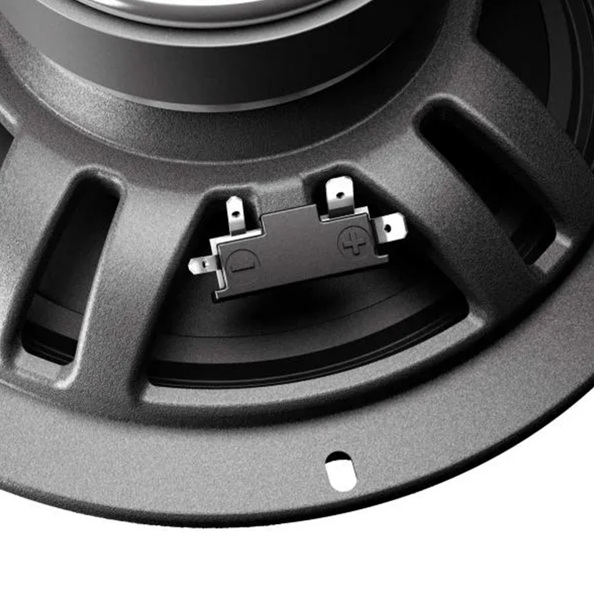 | Тип на високоговорителитеКоаксиални високоговорители: Коаксиалните високоговорители се характеризират с конструкция, наречена всичко в едно. Високочестотният и среднобасовият говорител са в един и същ кош. Предимството е по-лесен монтаж, но поради свързването или близостта на честотните диапазони в един говорител обикновено се понижава качеството на звука. Обикновено в центъра на среднобасовия говорител се намира високочестотният говорител, чиито звукова бобина работи във втората въздушна междина на общия магнитен кръг. Коаксиален говорител с три честотни диапазона се състои от среднобасов говорител, отпред на специален носач е поставен средночестотният говорител и отделен високочестотен. Компонентни високоговорители: Компонентните високоговорители се отличават с разделянето на отделни честотни диапазони: високочестотен + среднобасов + евентуално басов диапазон. Отделните говорители могат да бъдат разположени напълно отделно, което води до по-добро звуково и акустично представяне. В огромното мнозинство от случаите при компонентните високоговорители се доставя и външна кросоувърна мрежа, която разделя високите, средните/среднобасовите и при системи с три честотни диапазона и басовите честоти, както и позволява настройване на нивото в децибели на високочестотния говорител (напр. +2 dB, 0 dB, -2 dB), стръмността (напр. 6 dB/октава, 12 dB/октава) или активно/bi-amp свързване. | Средно-басови |