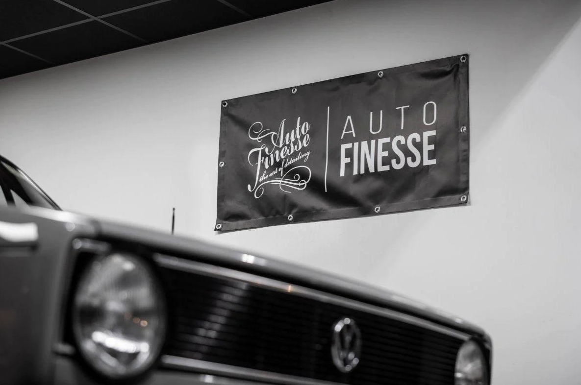 Auto Finesse Garage Banner е банер с логото на популярната автокозметика Auto Finesse с метални халки за закачане в гаража или работилницата. Оживете гаража си и му придайте отблясък на детайлинг студио. Банерът Auto Finesse ще промени характера на мястото, където стои вашият любим автомобил.